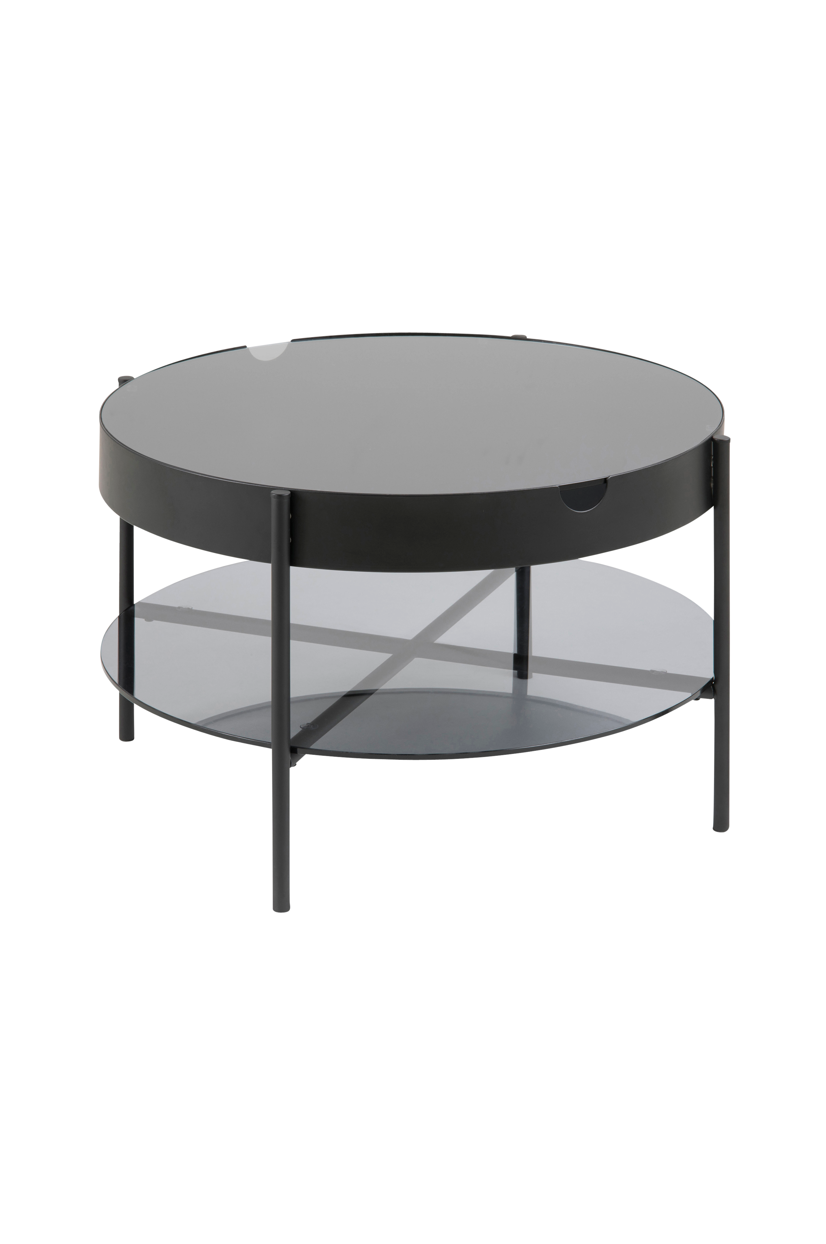 Mattsvart soffbord med bricka som kan lyftas av. Tillverkad i ek med en grund av pulverbelagd metall. Bordet har dessutom en förvaringshylla.