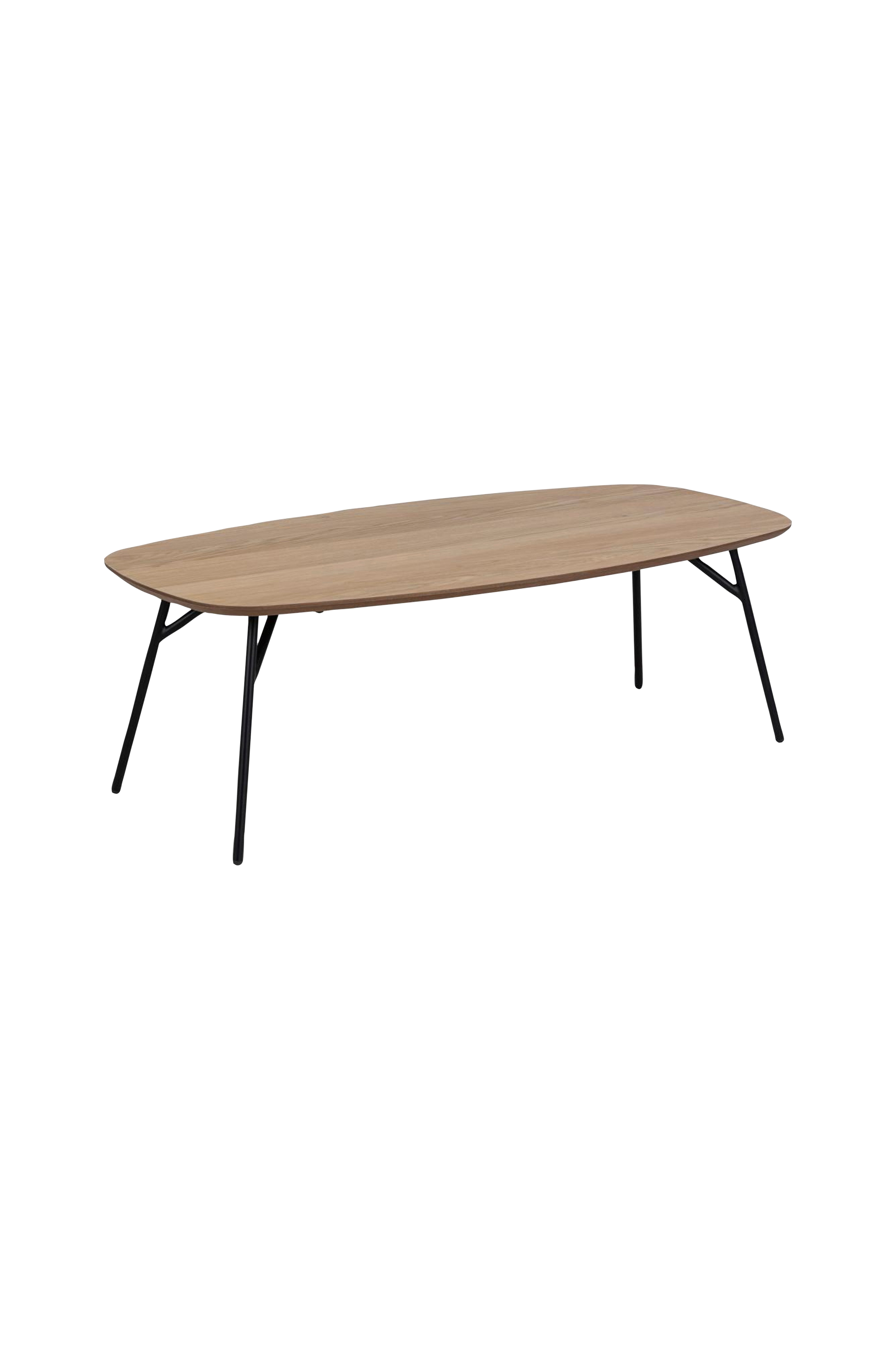 För att öka lugnet i vardagsrummet är detta soffbord utformat med en rundad rektangulär skiva i oljad ekfanér som utstrålar värme i hela rummet. Bordet vilar på smala stålben och balanserar modern elegans med naturlig charm, vilket ger en harmonisk touch till ditt vardagsrum.