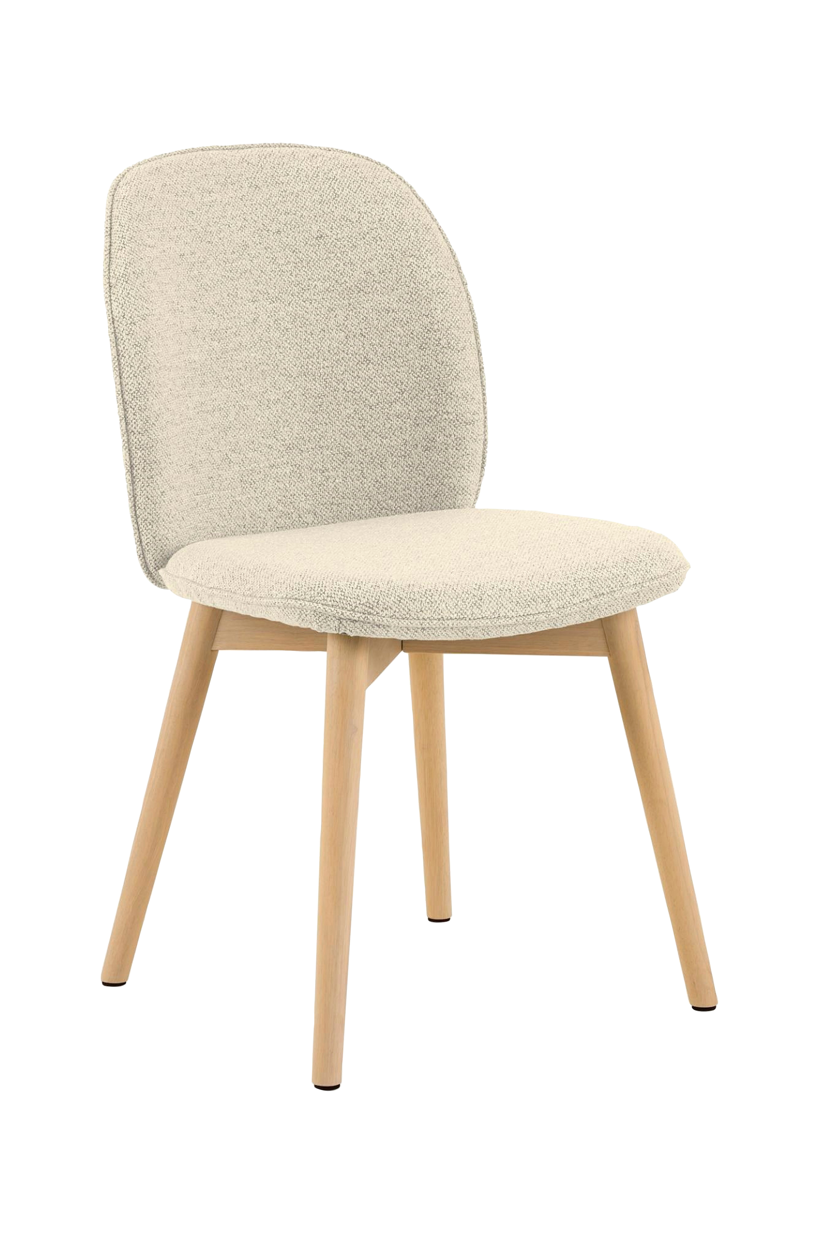 Lyft din matplats med den eleganta designen hos denna -färgade matstol. Det rundade ryggstödet ger dig stöd under en överdådig middag eller frukost. Den är klädd i ett mjukt boucléliknande tyg för en modern känsla. För att ge den en lätt, nordisk look stöds den av träben med en pigmenterad oljad finish - vilken vinnande kombination.
