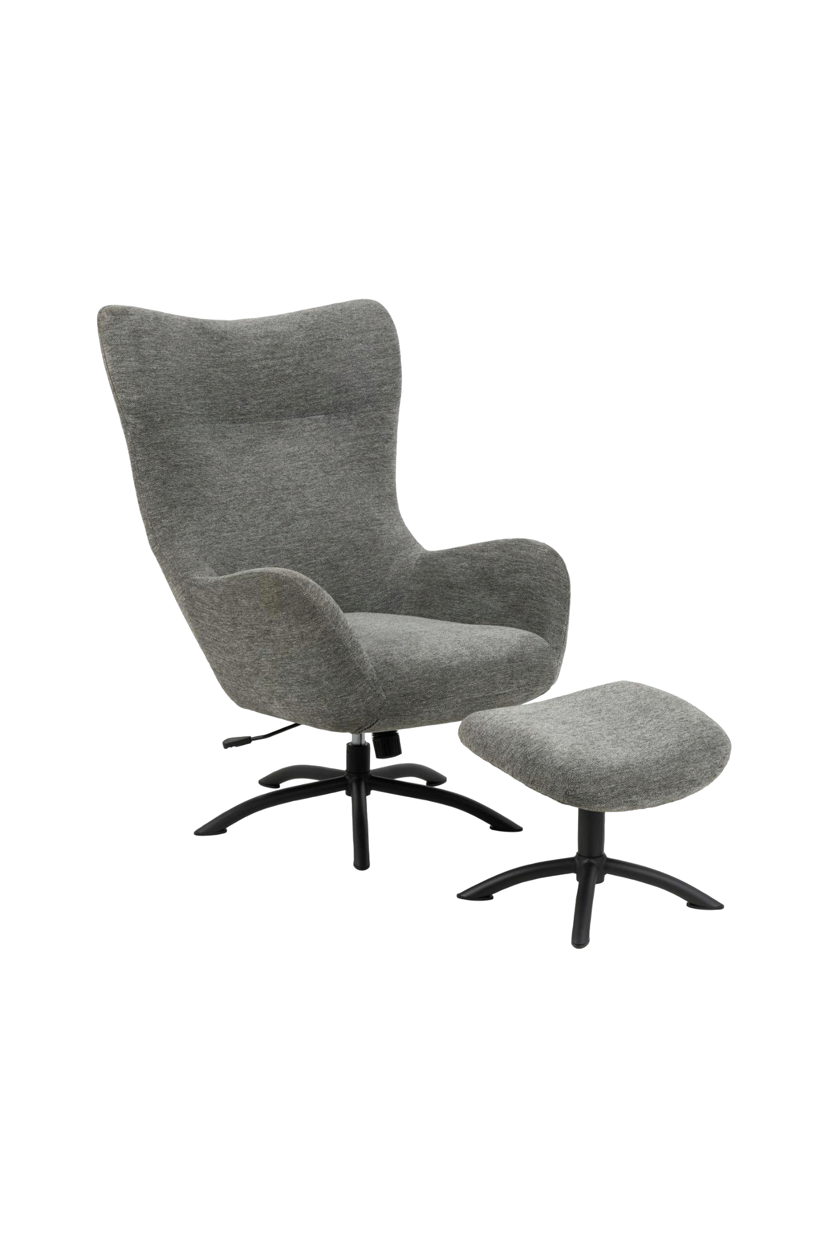Ge vardagsrummet en klassisk stil med denna fåtölj i skandinavisk stil. Den fällbara fåtöljen är vadderad med kvalitetsskum, klädd i ett mjukt, exklusivt tyg och ger en skön komfort samtidigt som det höga ryggstödet ger optimalt stöd för ryggen. Och om du vill ta en tupplur, justera bara fåtöljen manuellt till din favoritposition med spaken under sitsen. En matchande fotpall medföljer. Levereras omonterad.