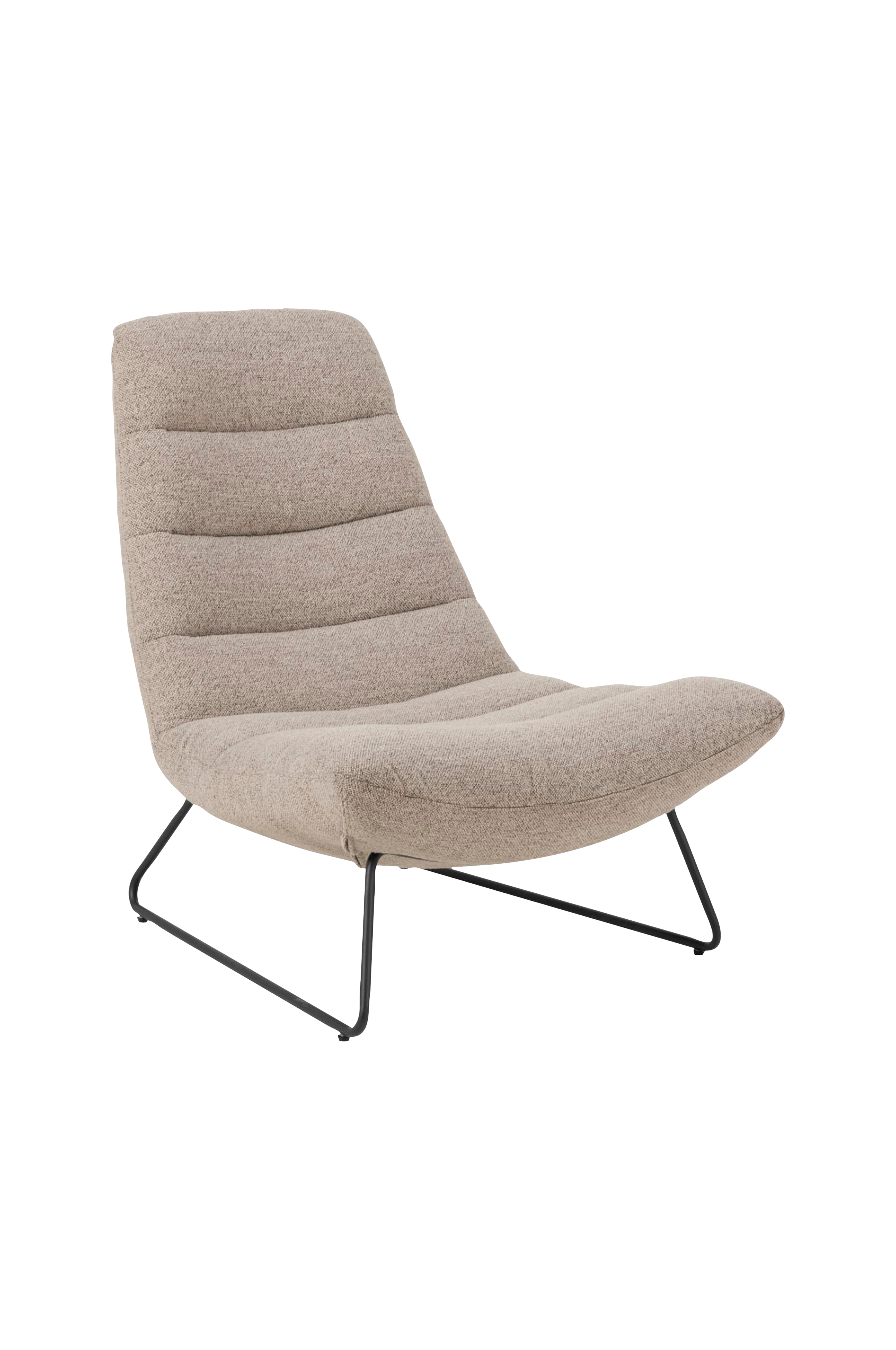 Ta ett djupt andetag och koppla av i denna loungestol. Med en böjd form som ger ultimat komfort och utseende, kommer denna stol fånga din gästs uppmärksamhet. Bouclétyget ger stolen en modern stil, medan de svarta benen av robust, pulverlackerad metall tillför ett industriellt inslag.