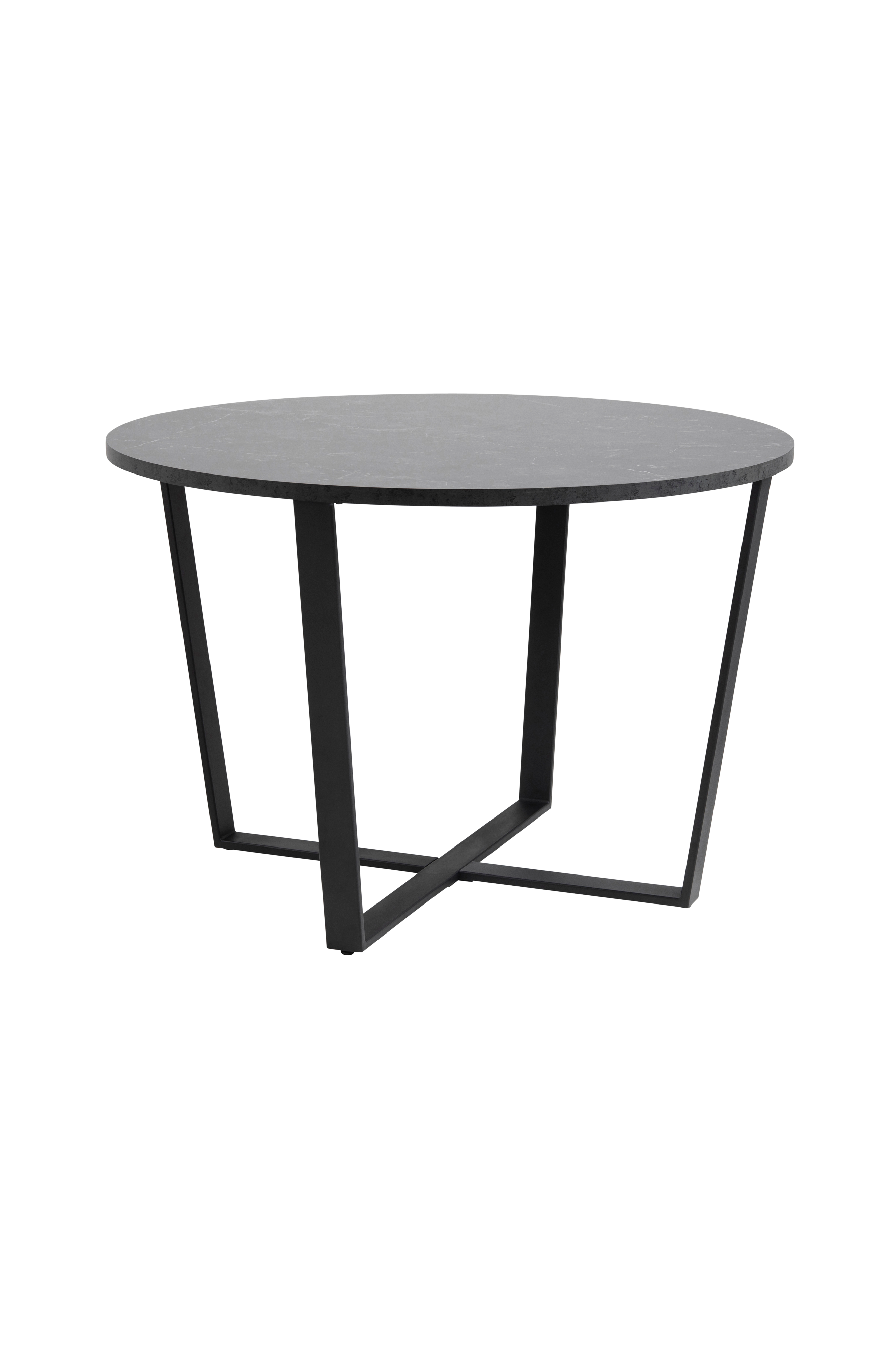 Matbord Tea med topp av printad melamin och pulverlackad metallstomme. Mått; diameter 110 cm, höjd 75 cm. Montera själv.