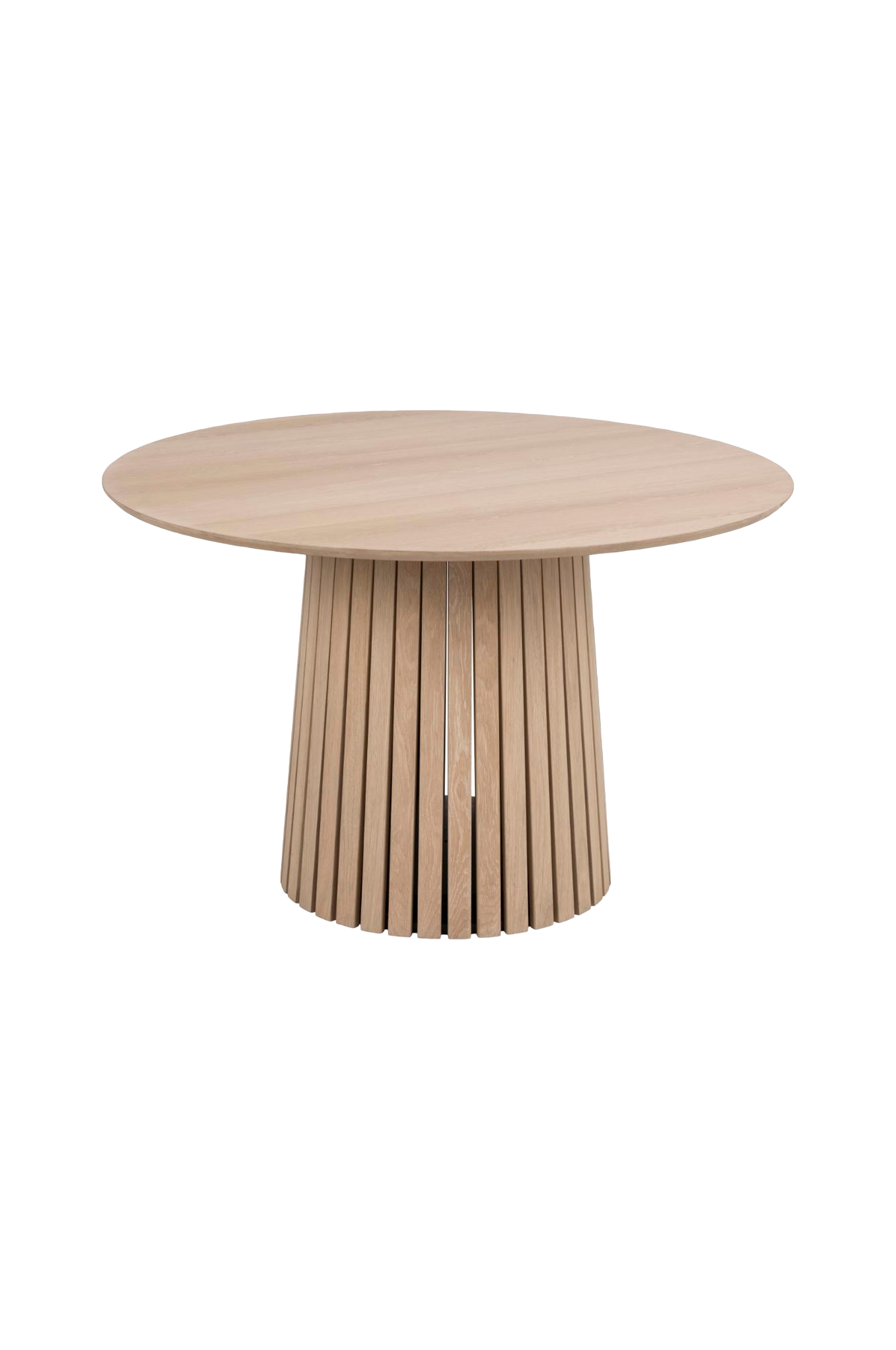 Möt ett modernt matbord som hyllar estetiken i skandinavisk design. Den generösa bordsskivan ger en känsla av lyx och erbjuder gott om plats för familj och vänner att samlas runt. Den rymliga bordsskivan matchas med en robust, koniskt formad bas som har förstärkts med estetiska lameller. Underredet ger designen en raffinerad och sofistikerad look, vilket gör bordet till ett riktigt utställningsföremål.