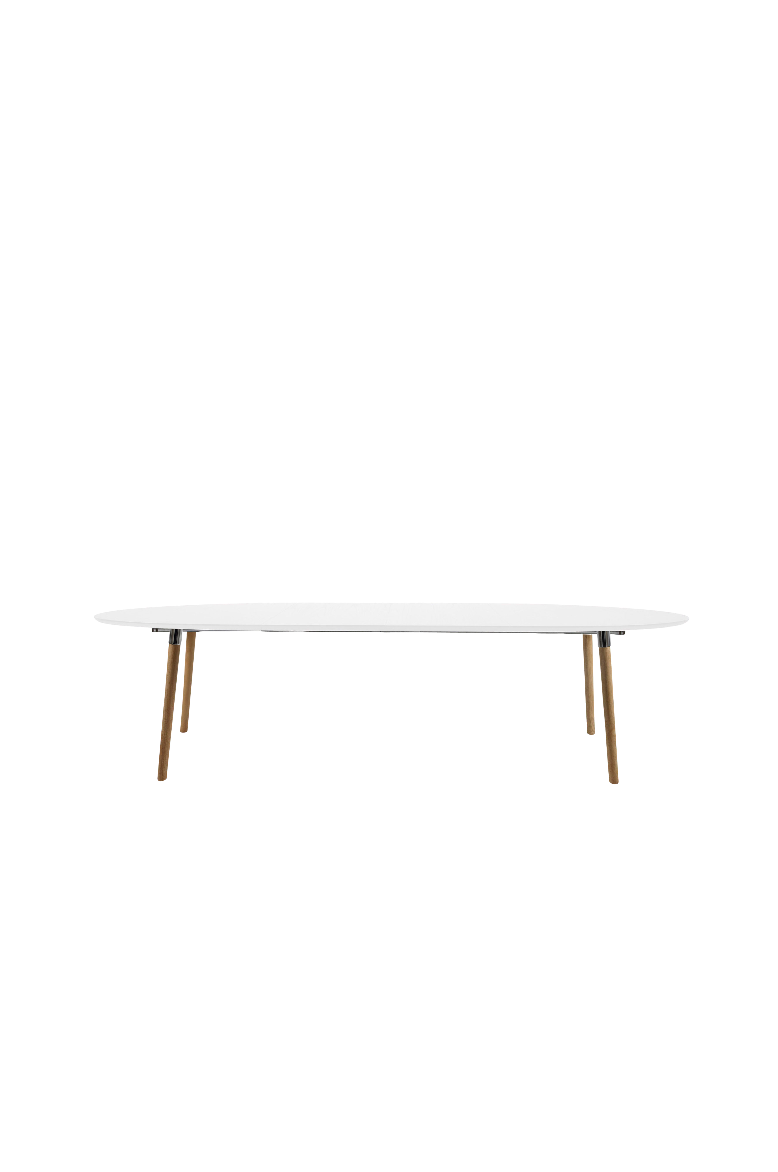 Matbord av gummiträ med kromade detaljer på benen. Iläggsskiva ingår. 100x170/270, höjd 74 cm. Avstånd mellan benen på bordets långsida är 216,3 cm +/- 1,5 cm. Lev. omonterat.