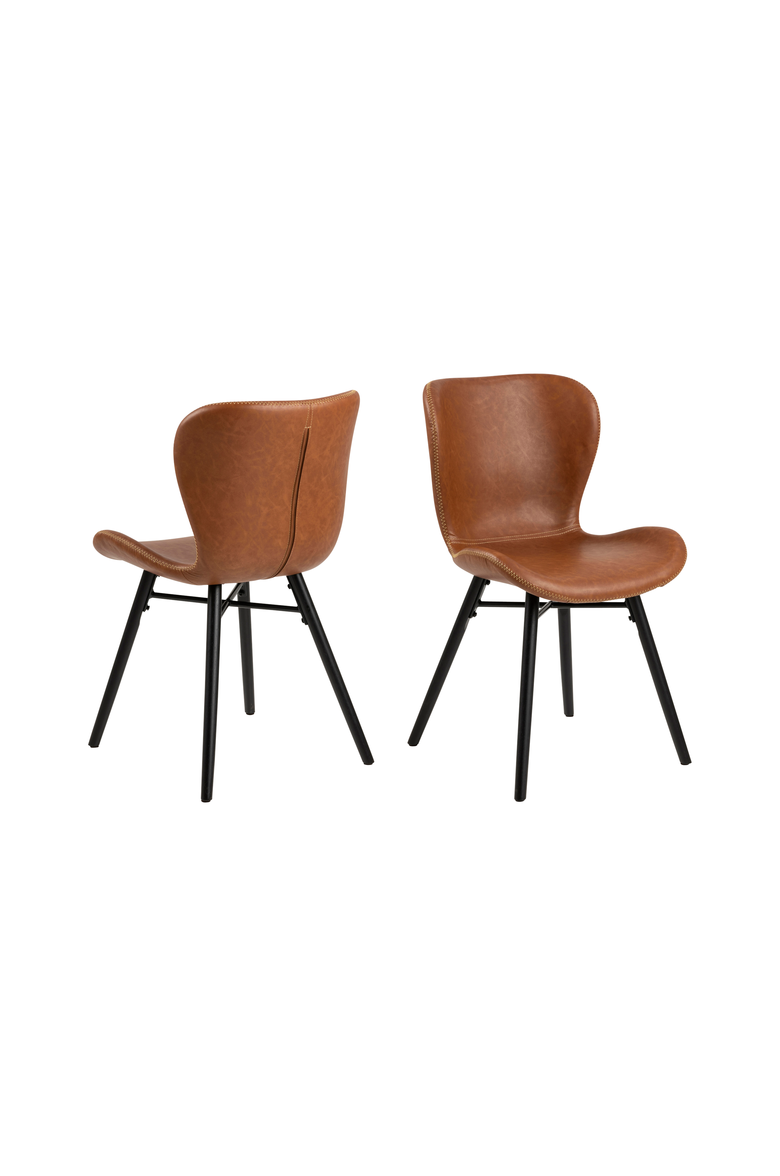 Matstol Rita 2 säljs i 2-pack. Ben av gummiträ och lackade metalldetaljer. Sits klädd i PU, konstläder. Mått Höjd 82,5 cm, bredd 47 cm, djup 56 cm. Sitthöjd 46,5 cm. Levereras omonterad.