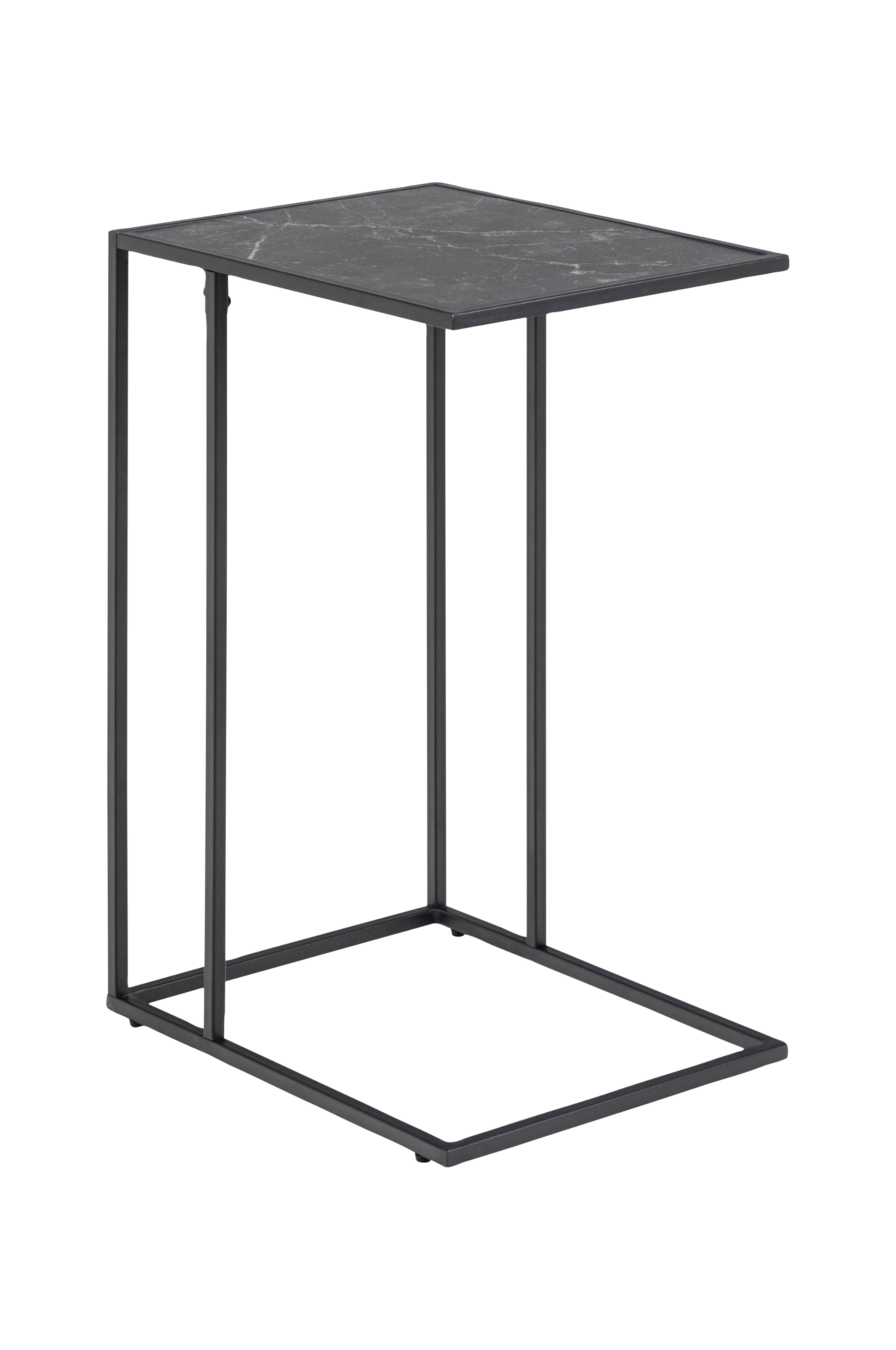 Tillför en industriell känsla med detta sidobord. De rena linjerna, marmorstilen och den svarta, pulverlackerade metallen gör att laptopbordet passar i så gott som alla hem. Bordet gör att du kan sitta bekvämt i soffan samtidigt som du använder laptopen. Skiva av MDF.