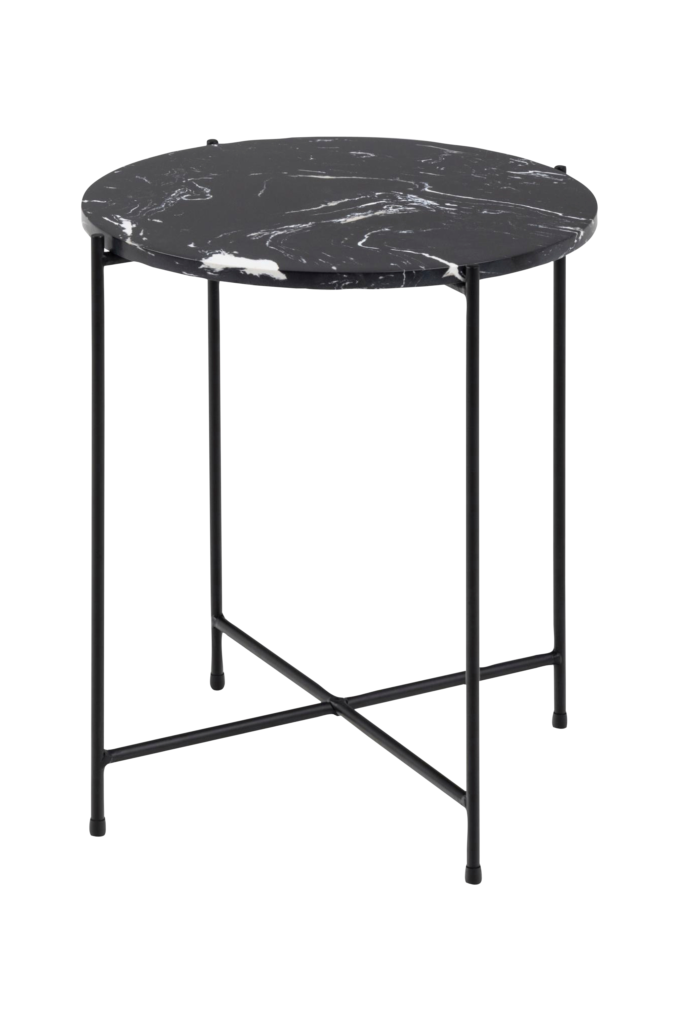 De kan vara små - men sidobord spelar fortfarande en stor roll i många hem. Och detta bord är svårt att missa. Tillverkat av konstgjord marmor i svart färg, är detta sidobord en elegant soffkompis. Den runda bordsskivan är placerad på en smal, pulverlackerad metallstomme med korsade detaljer.