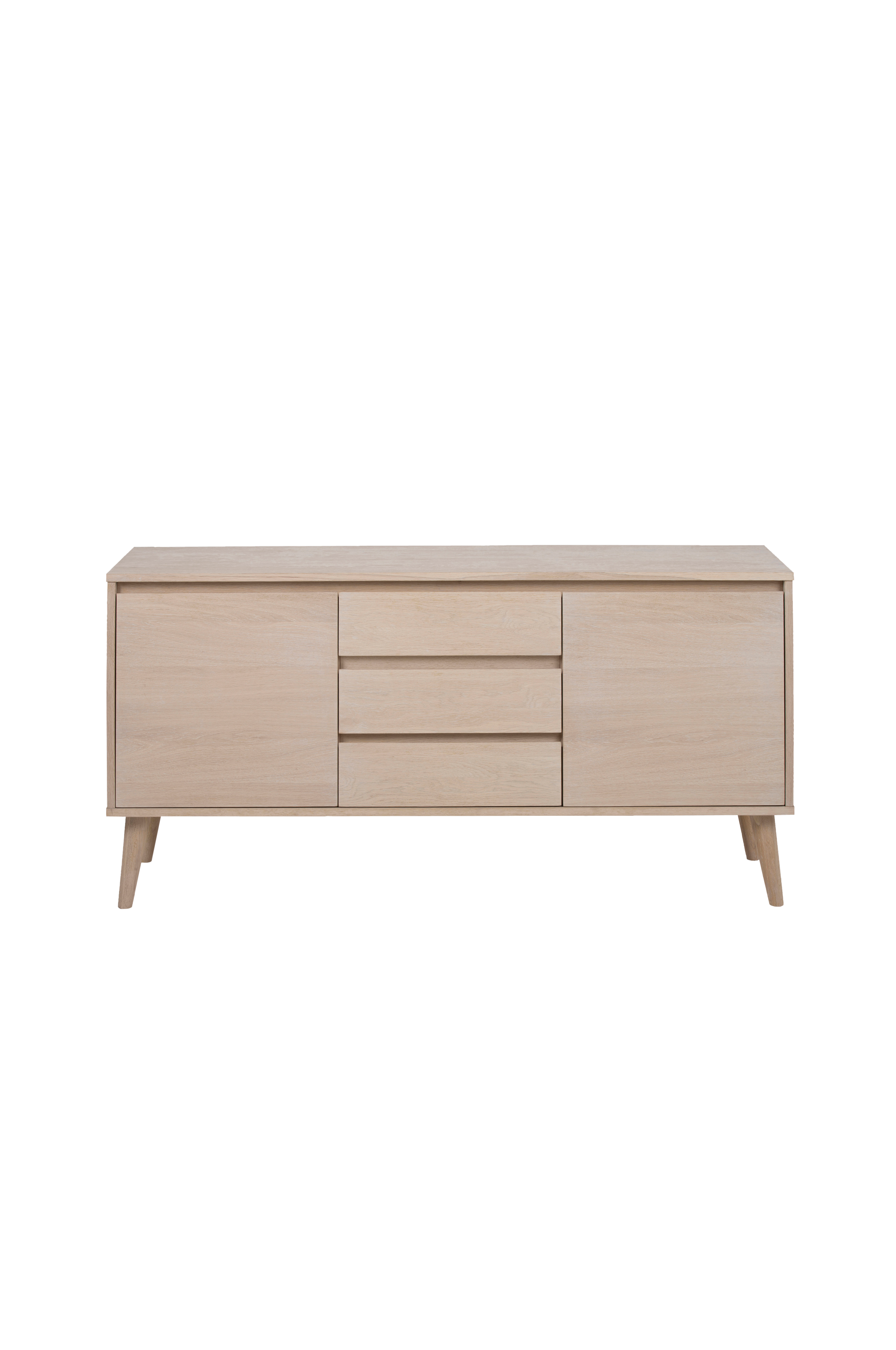 Skänk, ek och fanér. 2 dörrar och 3 lådor. Bredd 150, djup 40, höjd 75 cm. Levereras omonterad.