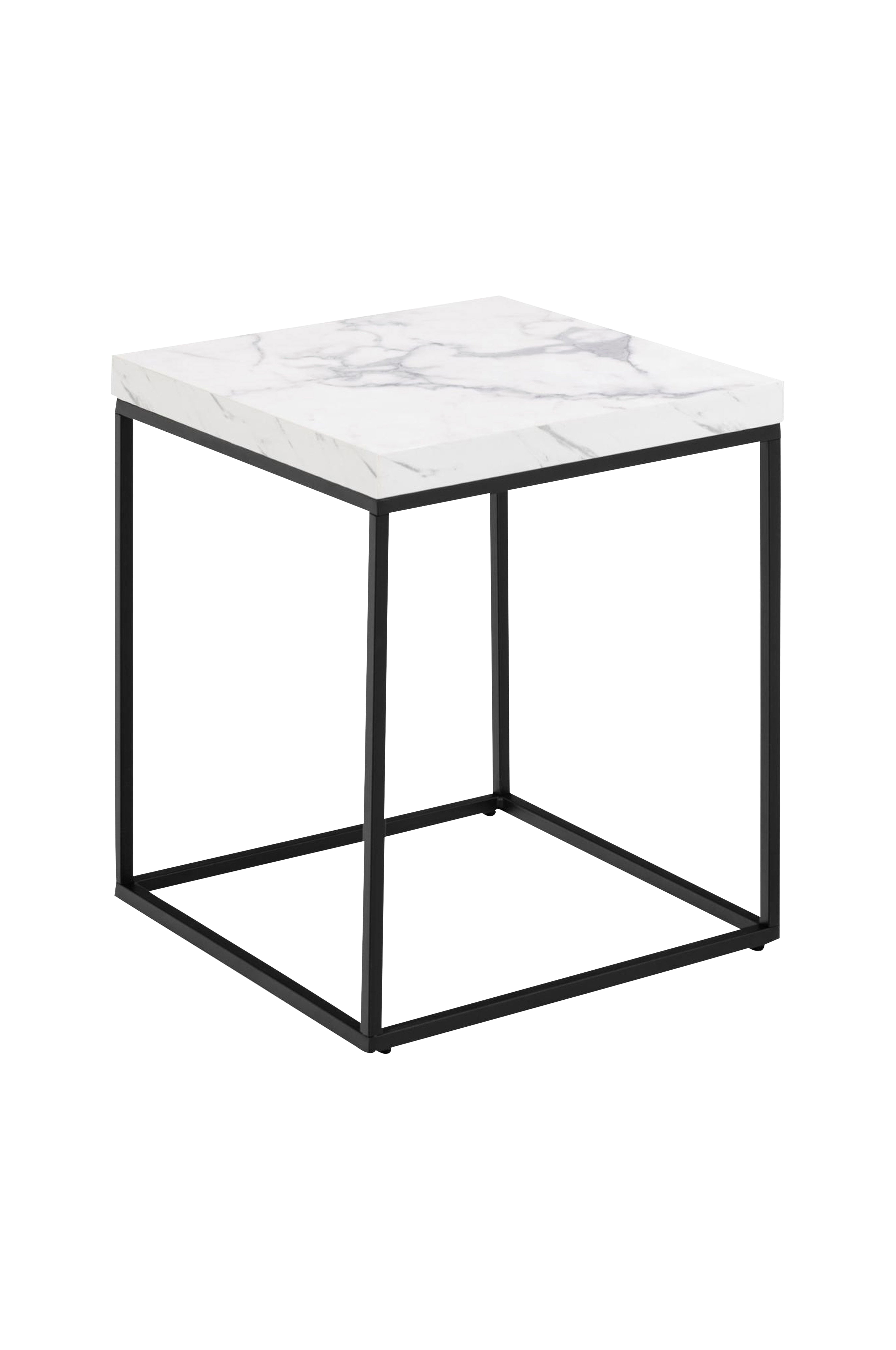 Det första du kommer att lägga märke till med detta soffbord är den uttrycksfulla bordsskivan som härrör från den fyrkantiga stålbasen. Den är tjock och utsmyckad med en svart marmorlook, vilket ger bordet ett djärvt utseende. Så om du letar efter en accentbit som ska sticka ut i rummet, då är det här rätt.