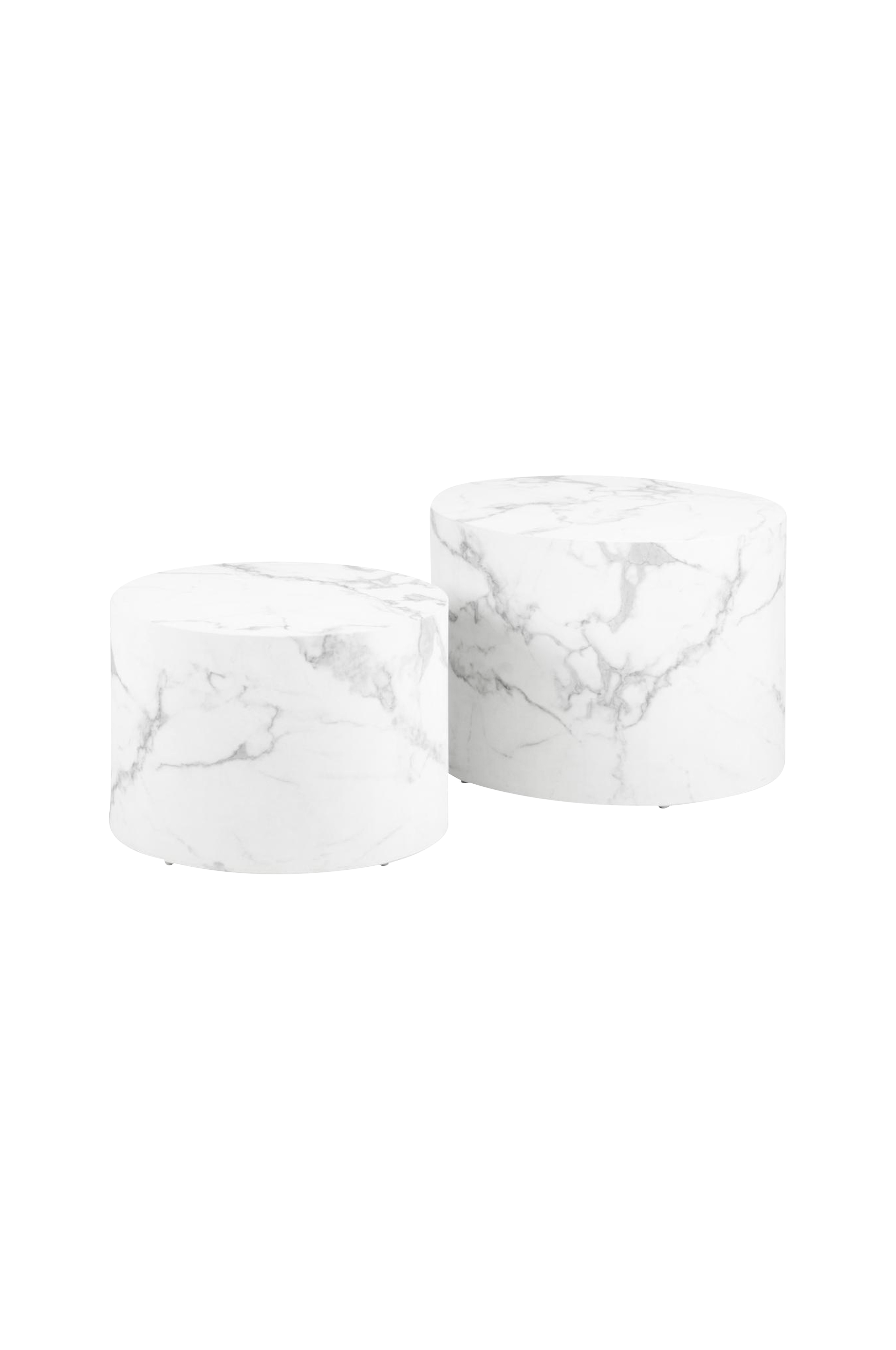 Placerade framför soffan eller på sidan ger dessa runda soffbord en dimension till ditt vardagsrum. Oavsett om de står tillsammans eller var för sig skapar de en visuellt intressant punkt som väcker uppmärksamhet. Deras strömlinjeformade silhuett och marmorlook ger en känsla av modern sofistikering till alla inredningsstilar.