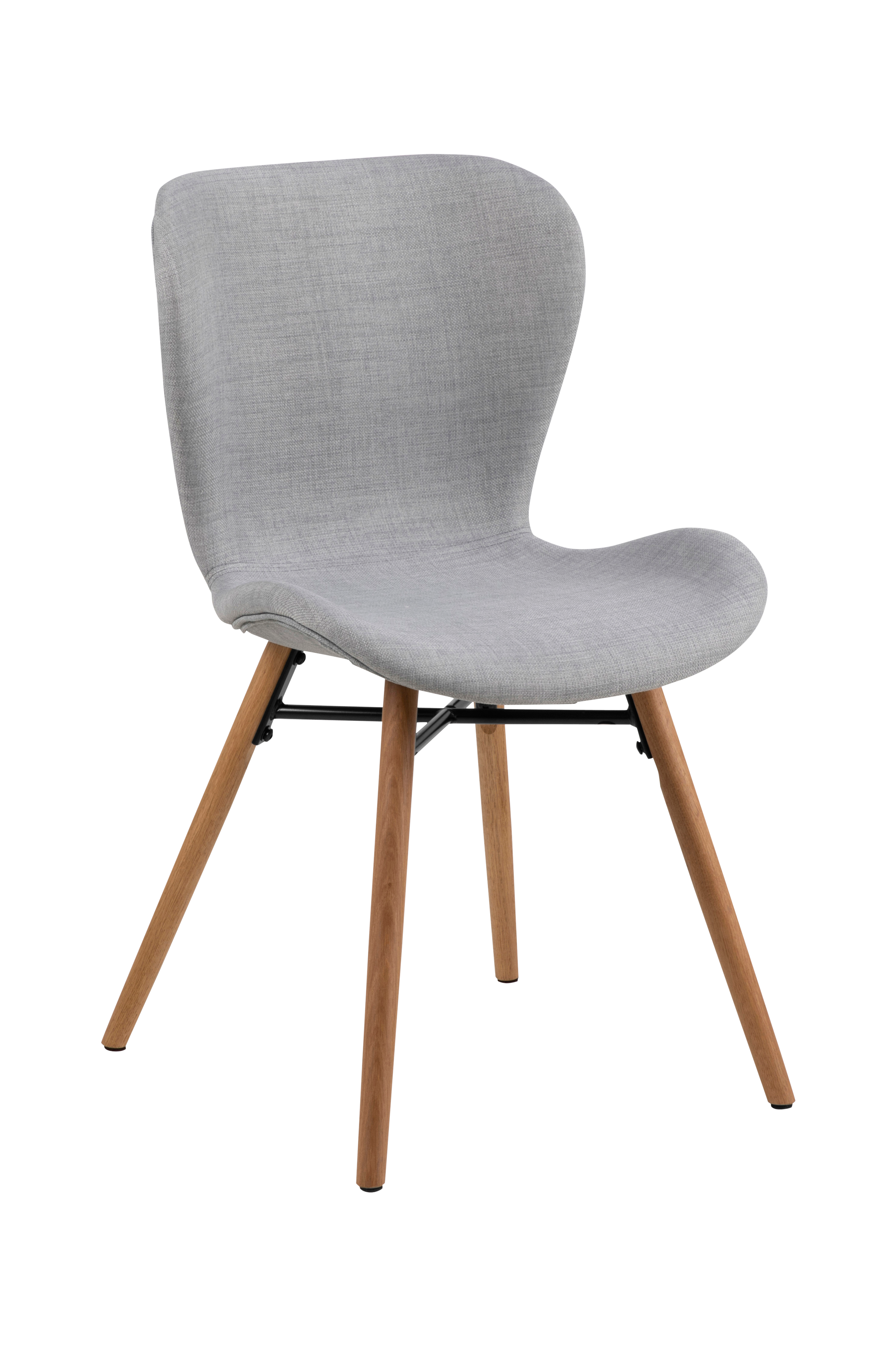 Stol i 2-pack med stoppad sits och tyg av 100% polyester, 25000 martindale. Ben av massiv ek. Höjd 82,5, bredd 47, djup 56 cm. Sitthöjd 47, sitt djup 40 cm. Montera själv.