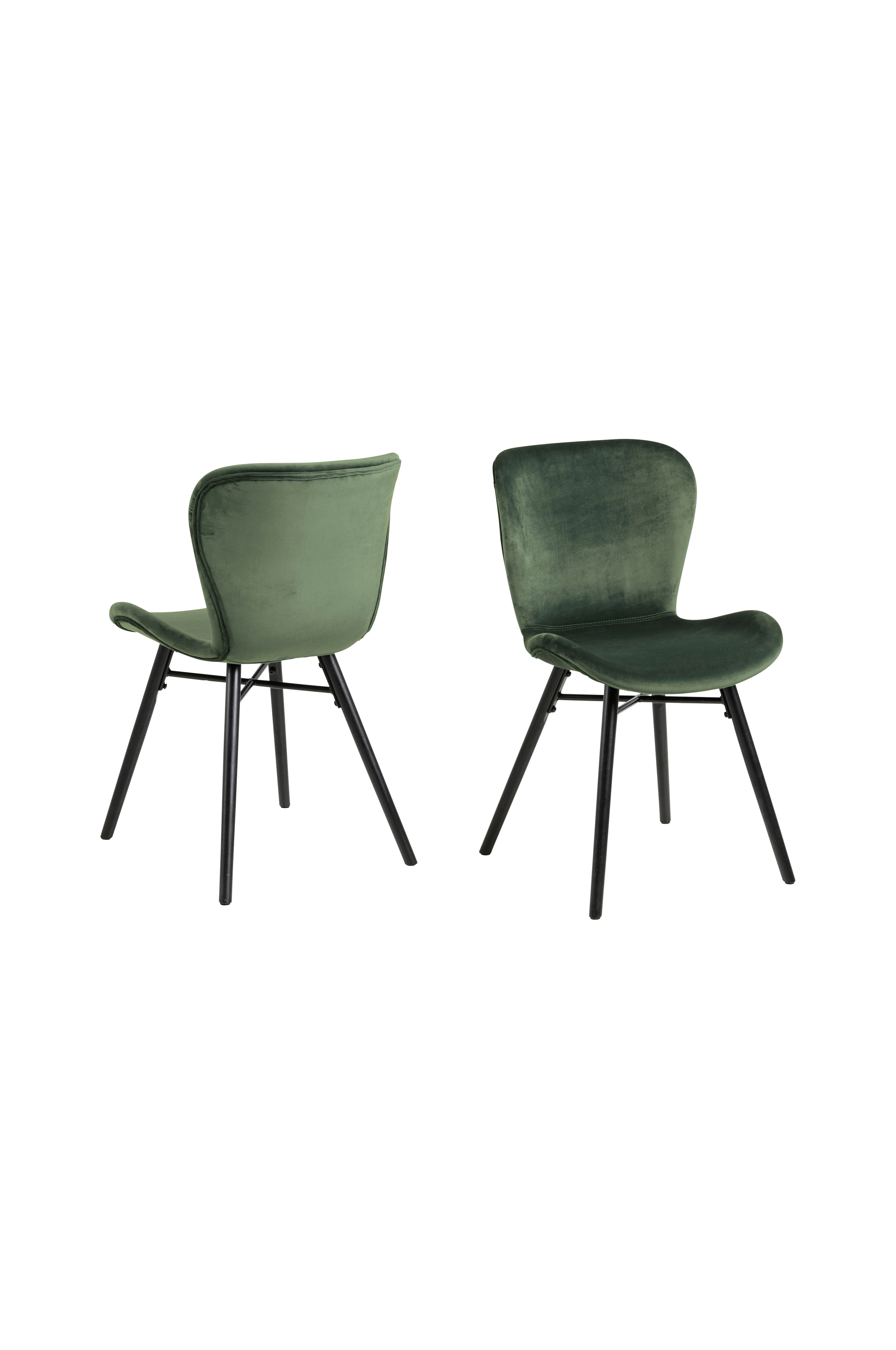 Matstol Rita, 2-pack. Trästomme och polyeterfyllning. Sammetstyg av 100% polyester. Ben av svartmålat gummiträ. Höjd 82,5, djup 56, bredd 47 cm. Sitthöjd 46,5, sitt djup 40, sittbredd 47 cm.