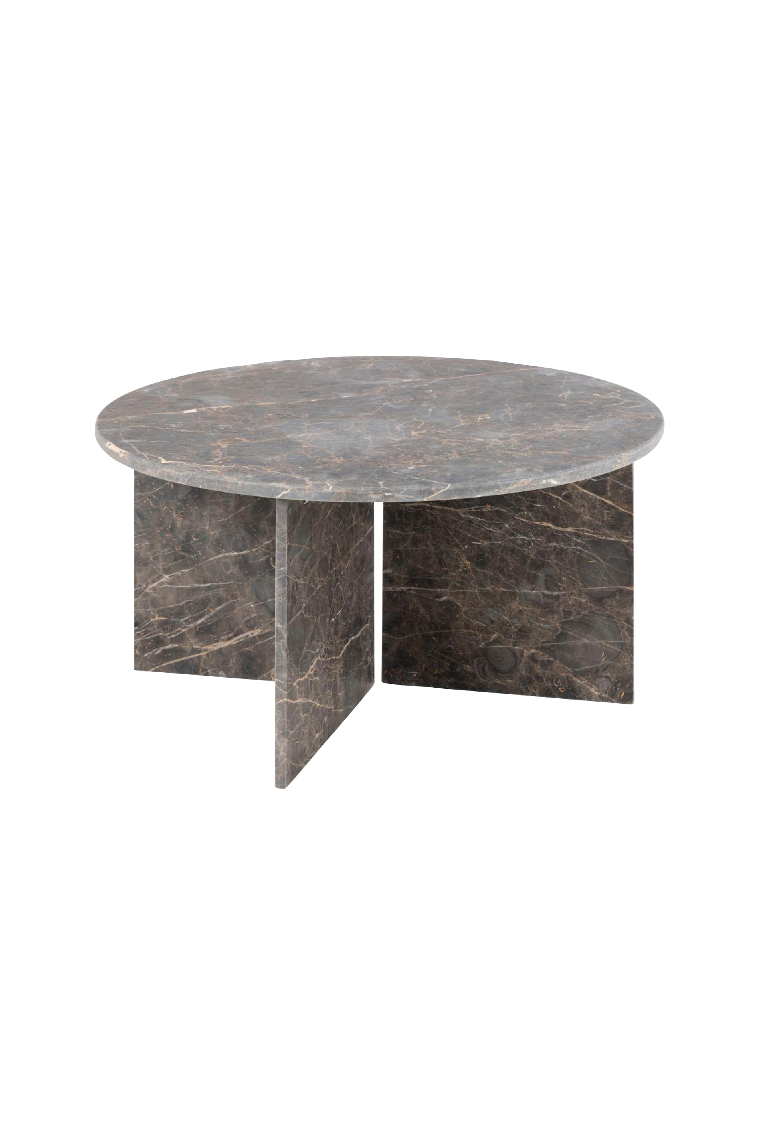 Bjud in en tidlös sofistikerad känsla till vardagsrummet med detta soffbord. Den runda bordsskivan och det v-formade underredet är skulpterade till en ren form som ger rummet en grund. Marmormarmorn varierar naturligt i färg, struktur och yta, vilket gör varje exemplar unikt. Det här är den typ av statementmöbel som förblir relevant oavsett trender.