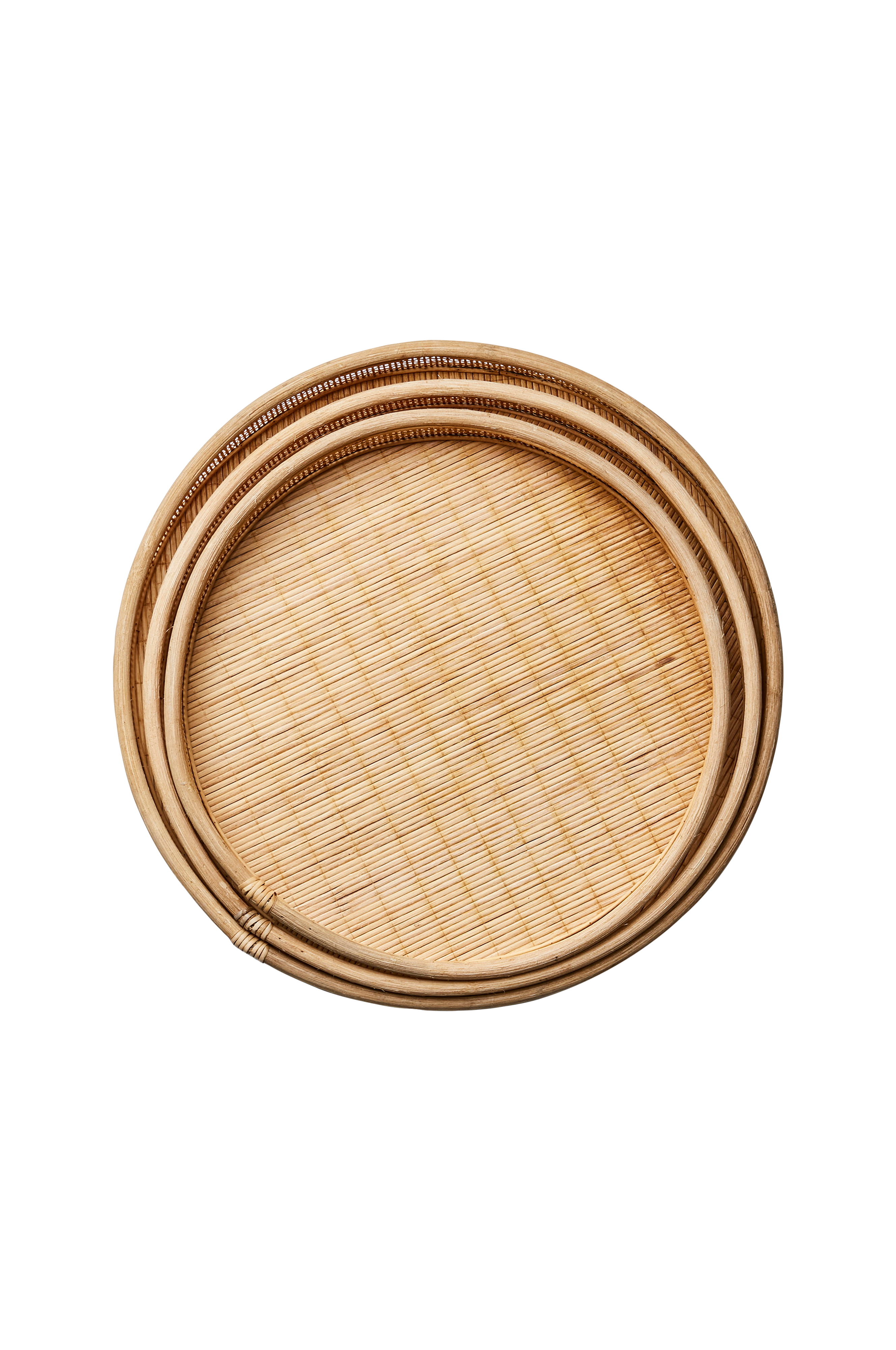 Handgjorda brickor, set om 3, tillverkade av bambu, rotting och plywood.tre olika storlekar, 50, 55 och 60 cm.