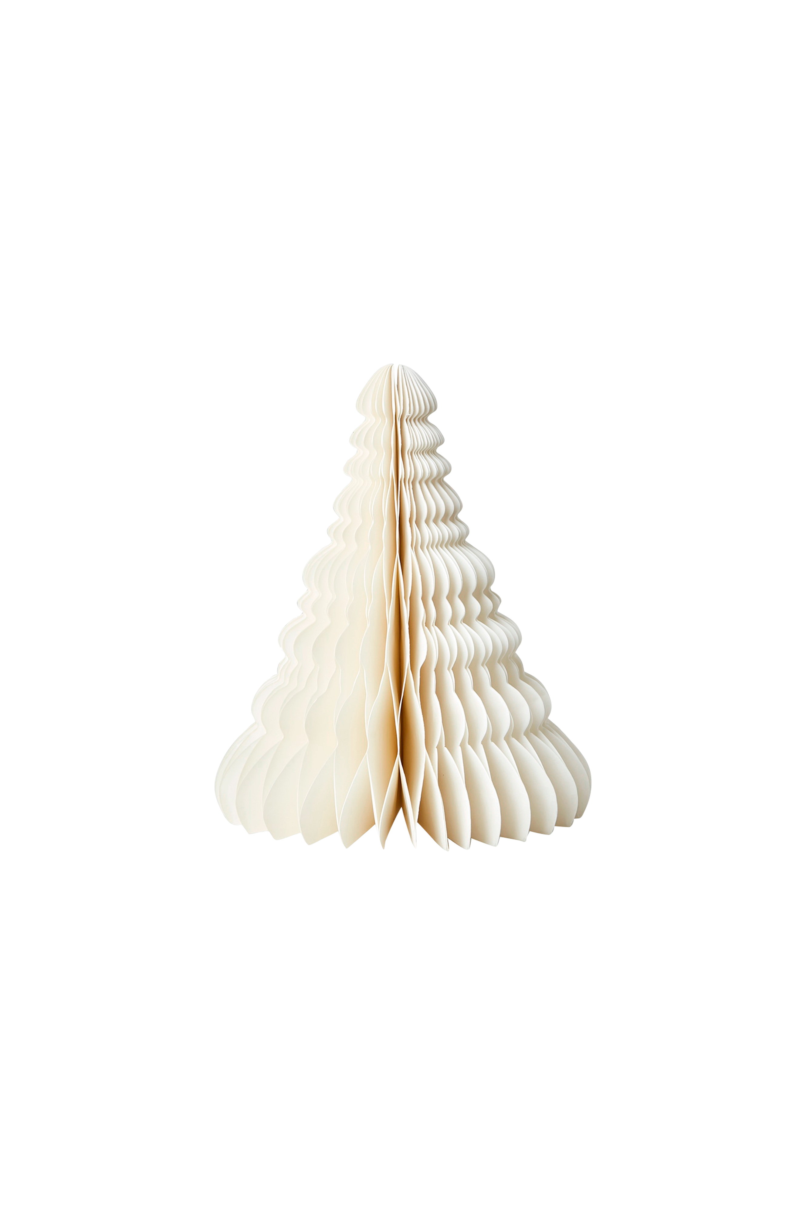 uni dekorativt träd i vitt ger en lugn och elegant touch till din juldekoration. Den är tillverkad av vackert vikt papper och har en ren och tidlös design som utstrålar lugn och enkelhet. Perfekt som mittpunkt eller som en del av en vinterdekoration och ger en mjuk och sofistikerad närvaro i alla utrymmen.