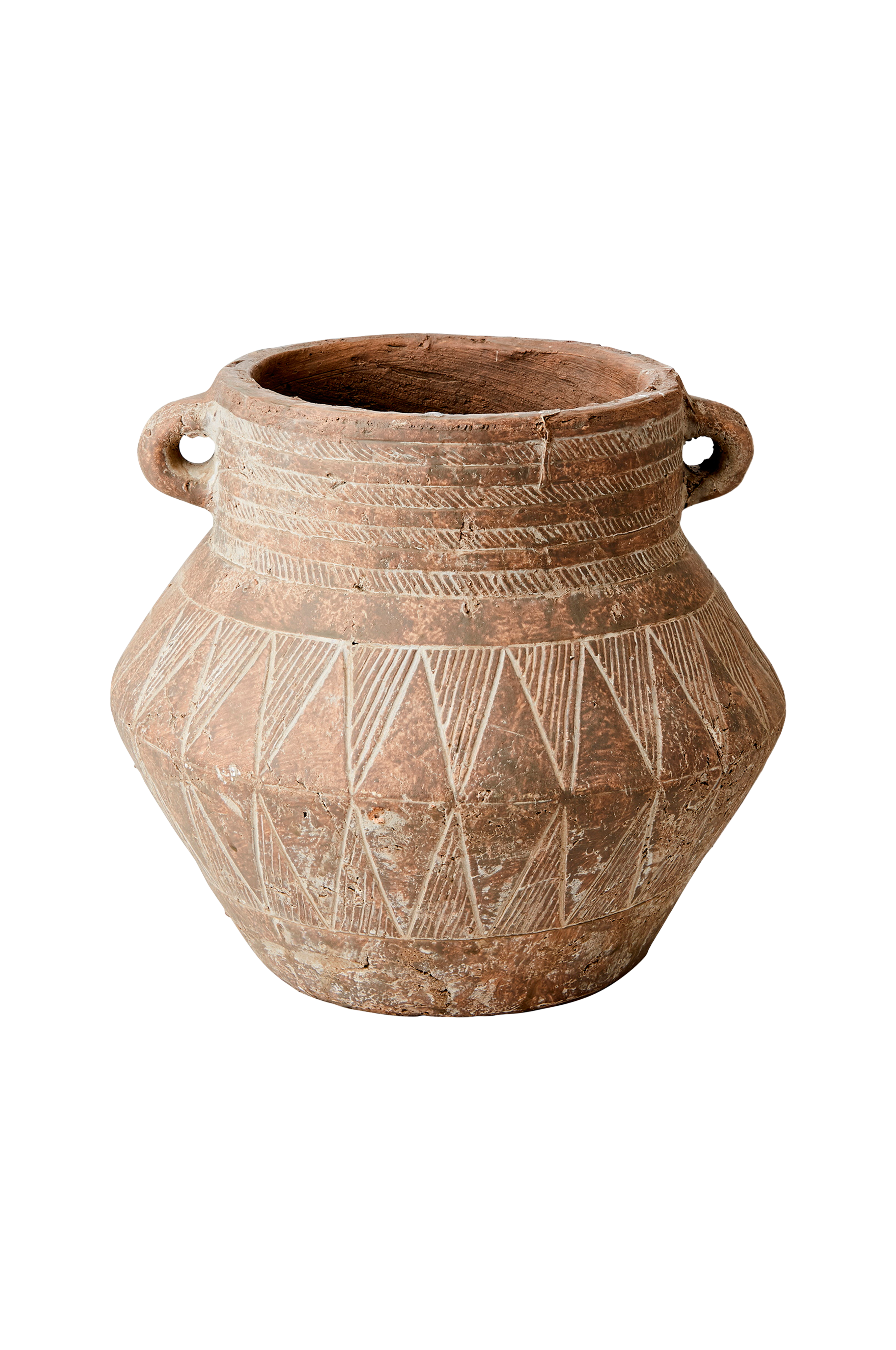 Rustik terrakottakruka med ett dekorativt zick-zack-mönster runt om. En vacker inredningsdetalj som passar bra i de flesta rum. Placera den på valfri plats och gruppera den tillsammans med andra krukor eller dekorationer i varierande höjd för att skapa ett fint blickfång eller ett stilrent stilleben. Glöm inte att ställa ett fat under blomkrukan för att undvika fläckar på ytan.