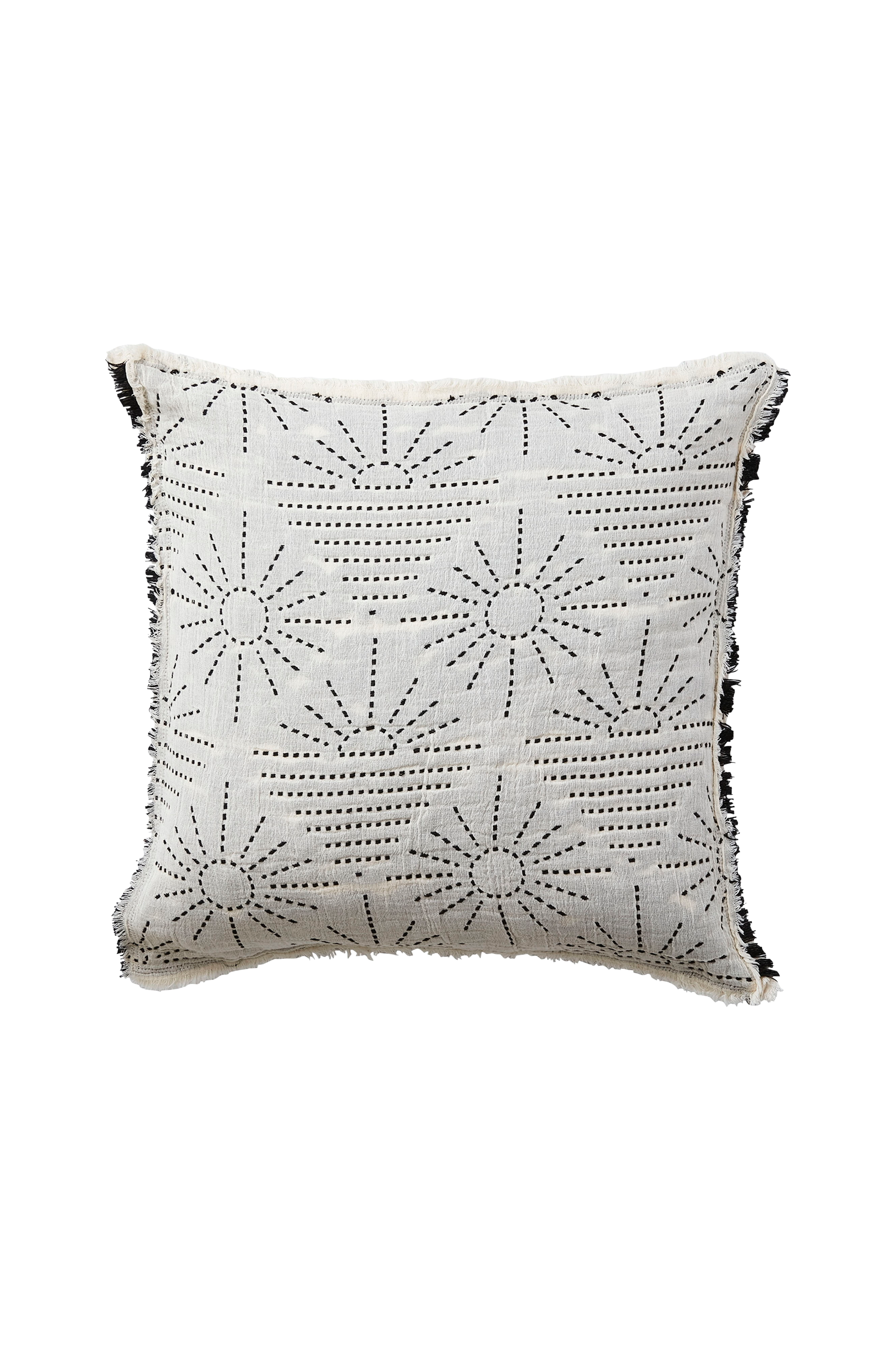 Filt med grafiskt solmönster. En fin textilserie där de sydda mönstren är som en dans av konst och funktion förenade på en och samma yta. Denna konstform kombinerar det visuella uttrycket i grafiska mönster med den taktila skönheten i detta tunna bomullstyg med flera lager. Maskintvätt 30°.