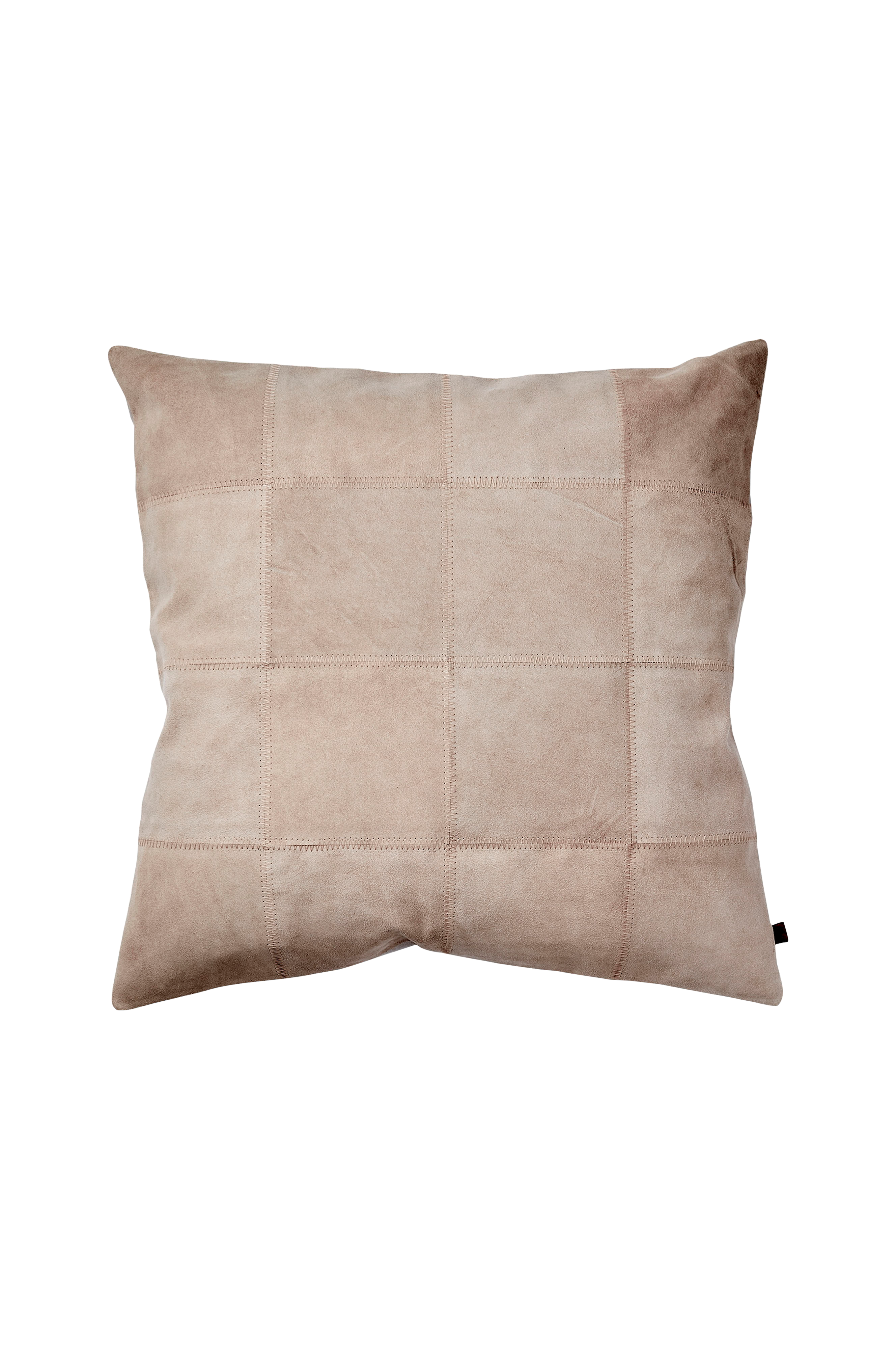 Kuddfodral sydda med patchworkteknik av spillbitar från naturlig kohud. Färgnyanserna varierar mellan överdrag med samma artikelnummer men mönstret är detsamma. Rengörs endast med fläckrengöring.