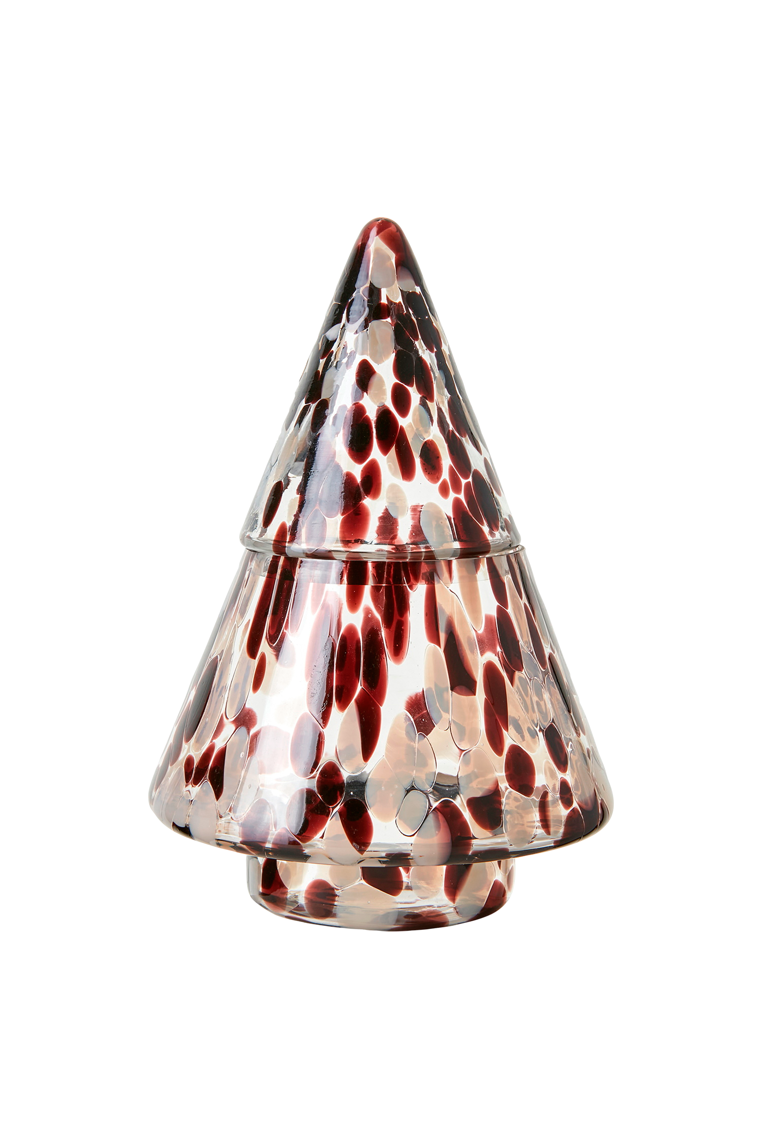 party skål med lock kombinerar varma bruna, beige och svarta toner i elegant handblåst glas. Varje del är unik, med subtila variationer som ger karaktär och charm. Perfekt för snygg förvaring eller som en dekorativ accent, den ger en sofistikerad, organisk touch till ditt hem.