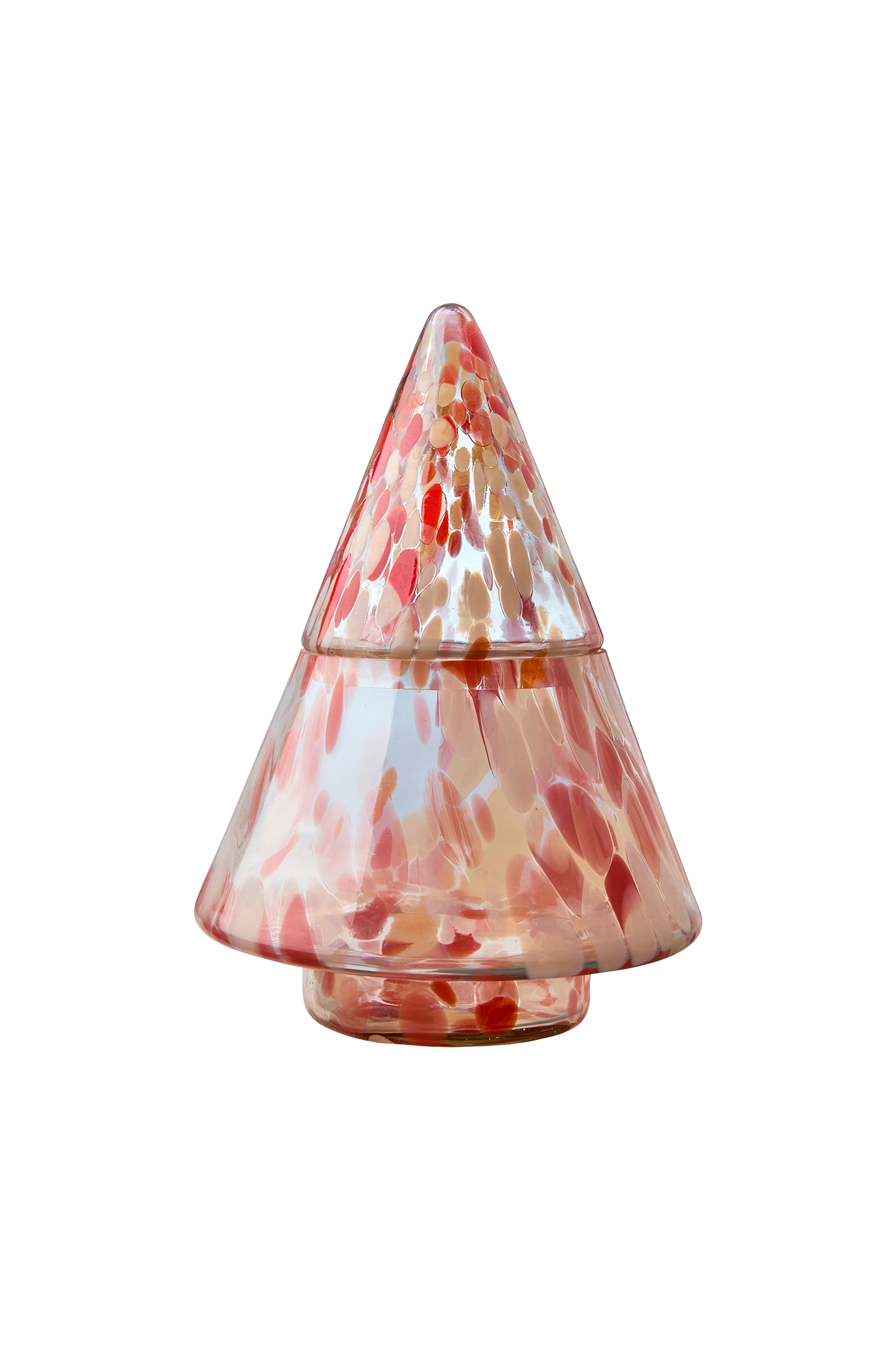 party skål med lock i rött ger en djärv och elegant touch till din inredning. Handblåst glas med subtila variationer gör varje del unik. Perfekt för förvaring av godsaker eller som en slående dekorativ accent, den ger värme och livlig karaktär till alla miljöer.