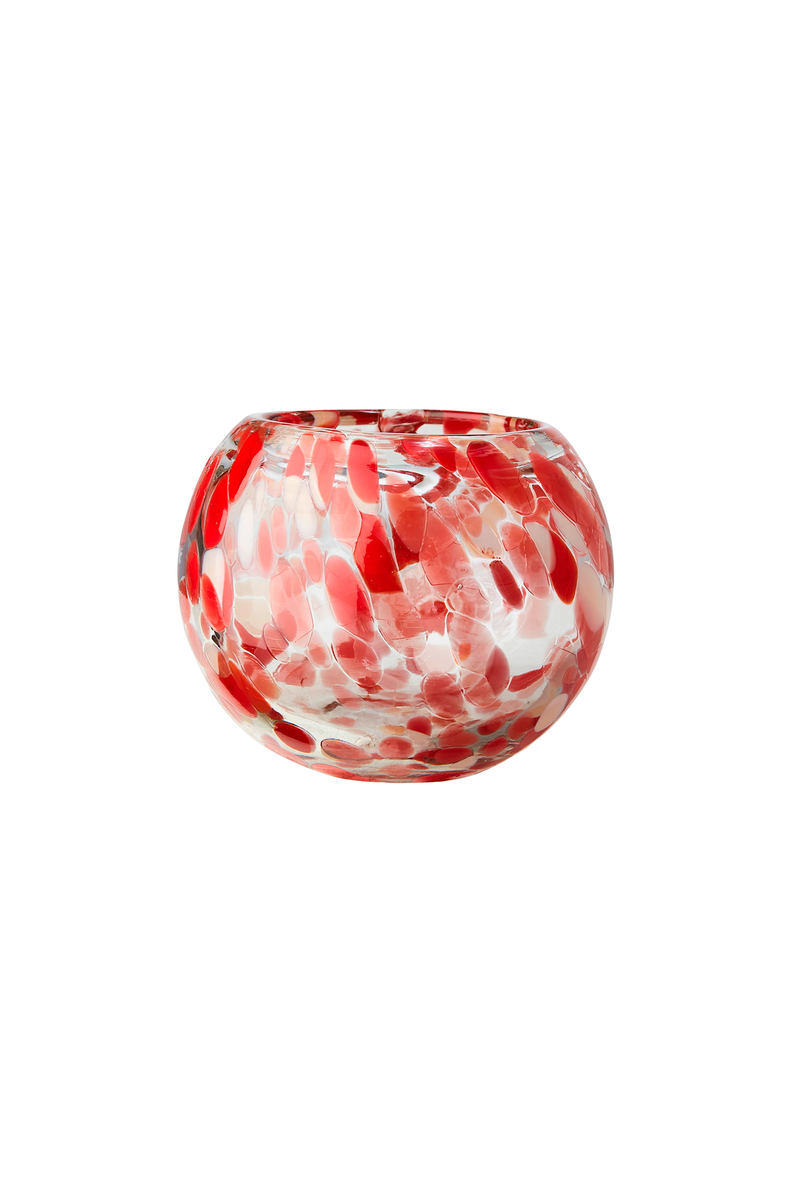 party värmeljushållare i rött ger en touch av värme och charm till din inredning. Tillverkad av handblåst glas, varje del är unik med subtila variationer i färg och form. Dess djupröda ton lyser vackert med levande ljus och skapar en mysig och julig atmosfär.