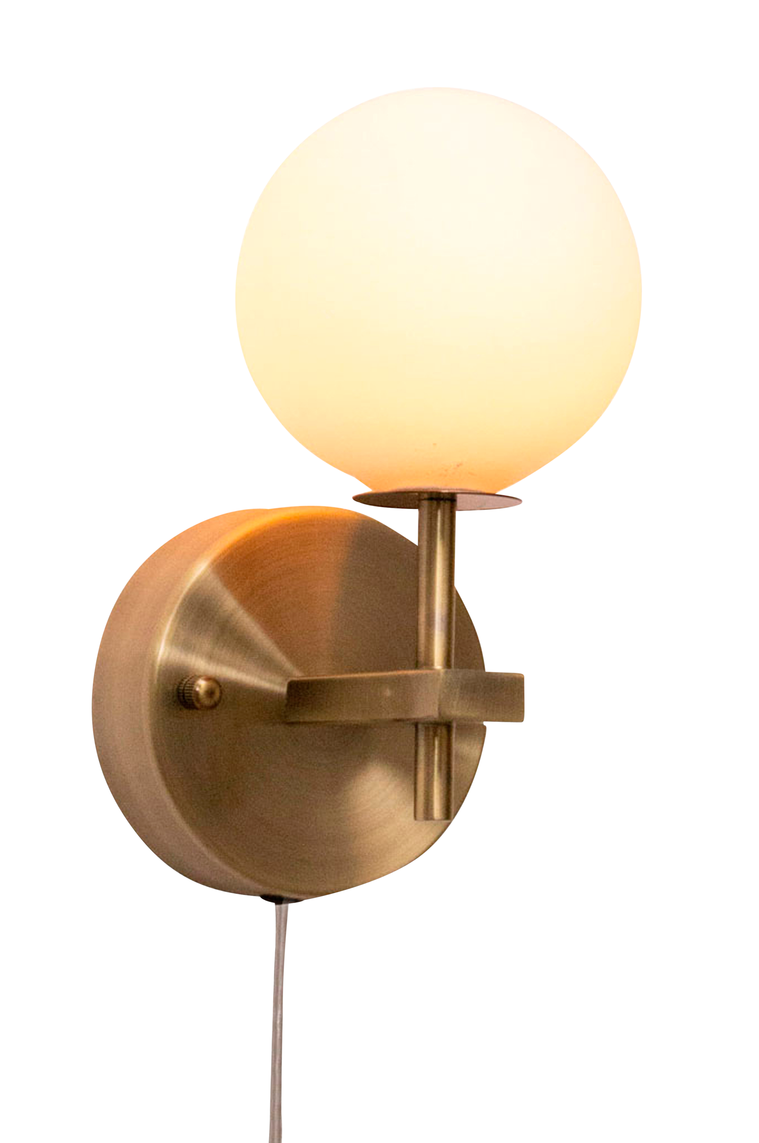 Lampett i bronsfärgad aluminium med vit kupa. Lampetten är 20 cm i höjd, 10 cm bred och har ett djup på 16 cm. Sladdlängd 180 cm. Sockel G9 och max 35 W.