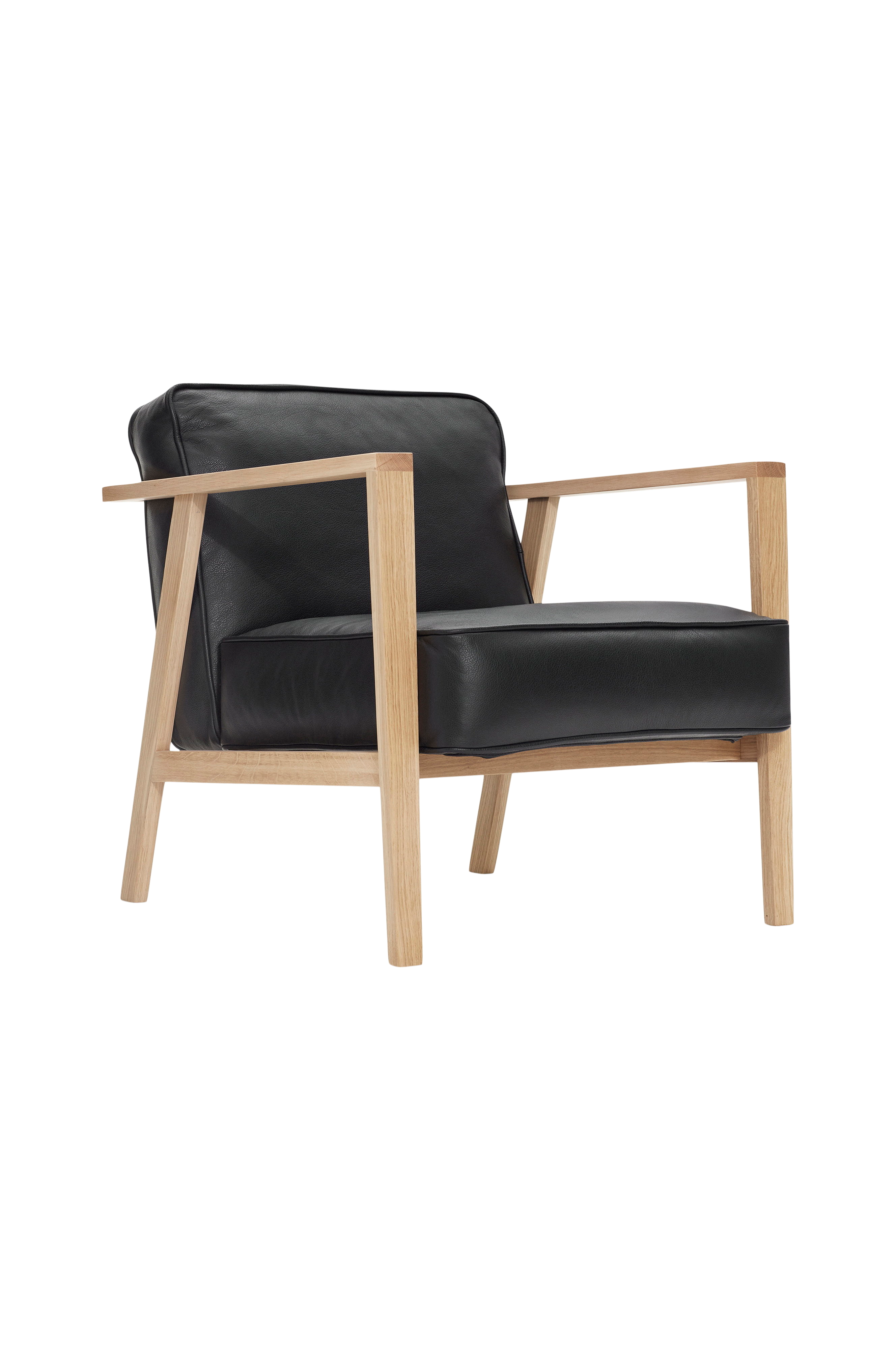 Andersens lounge- och fåtölj LC1 ger en möjlighet att göra utrymmet så mycket mer exklusivt. Stolen har ett mycket nordiskt uttryck och med sin smala ram är den elegant i sitt utförande. LC1 är en klassisk och bekväm loungefåtölj som passar lika bra i vardagsrummet som i väntrummet eller receptionen. Stommen i massiv ek i matt lack med svart läder.