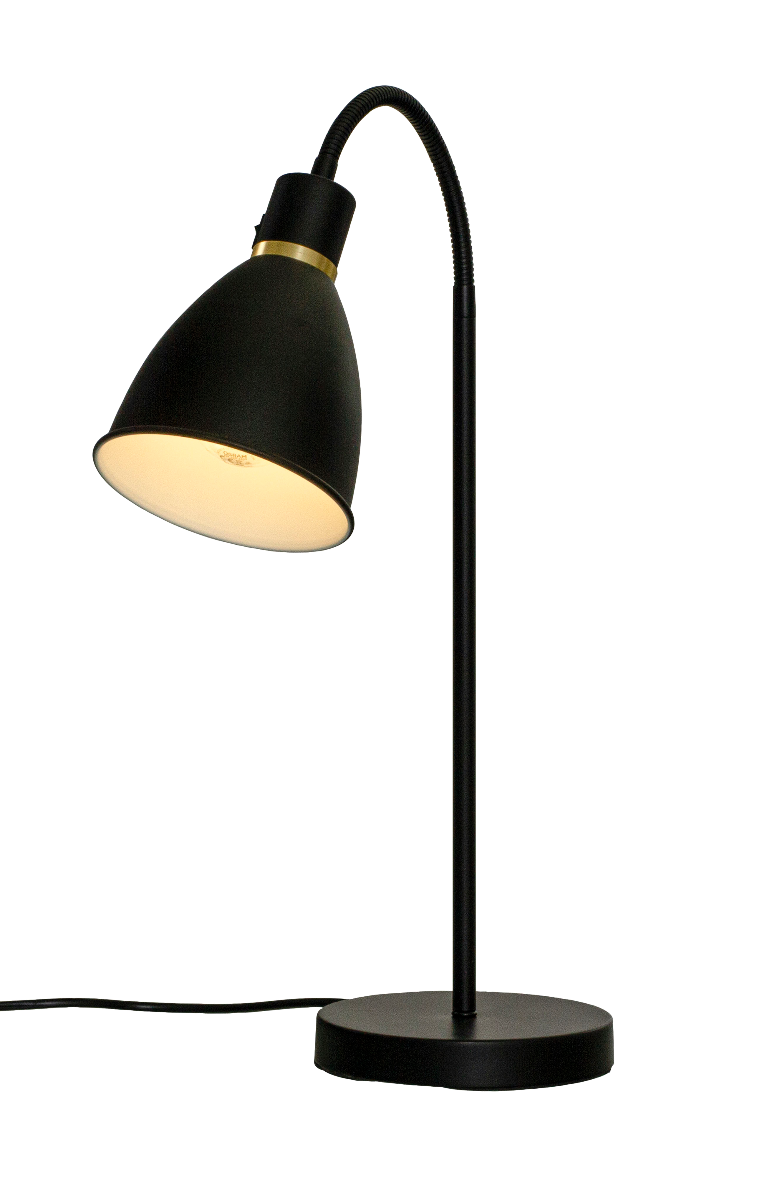 Idre bordslampa har en klassisk design i svartlackerad metall med en dekorativ ring i matt mässing. Idre passar lika bra på skrivbordet som sängbordet eller hallbyrån. Den böjbar armen låter dig rikta ljuset dit du vill. Lampans strömbrytare sitter lättåtkomligt på lamphuvudet. Idre bordslampa kan även kombineras med andra lampor i Idre-familjen.