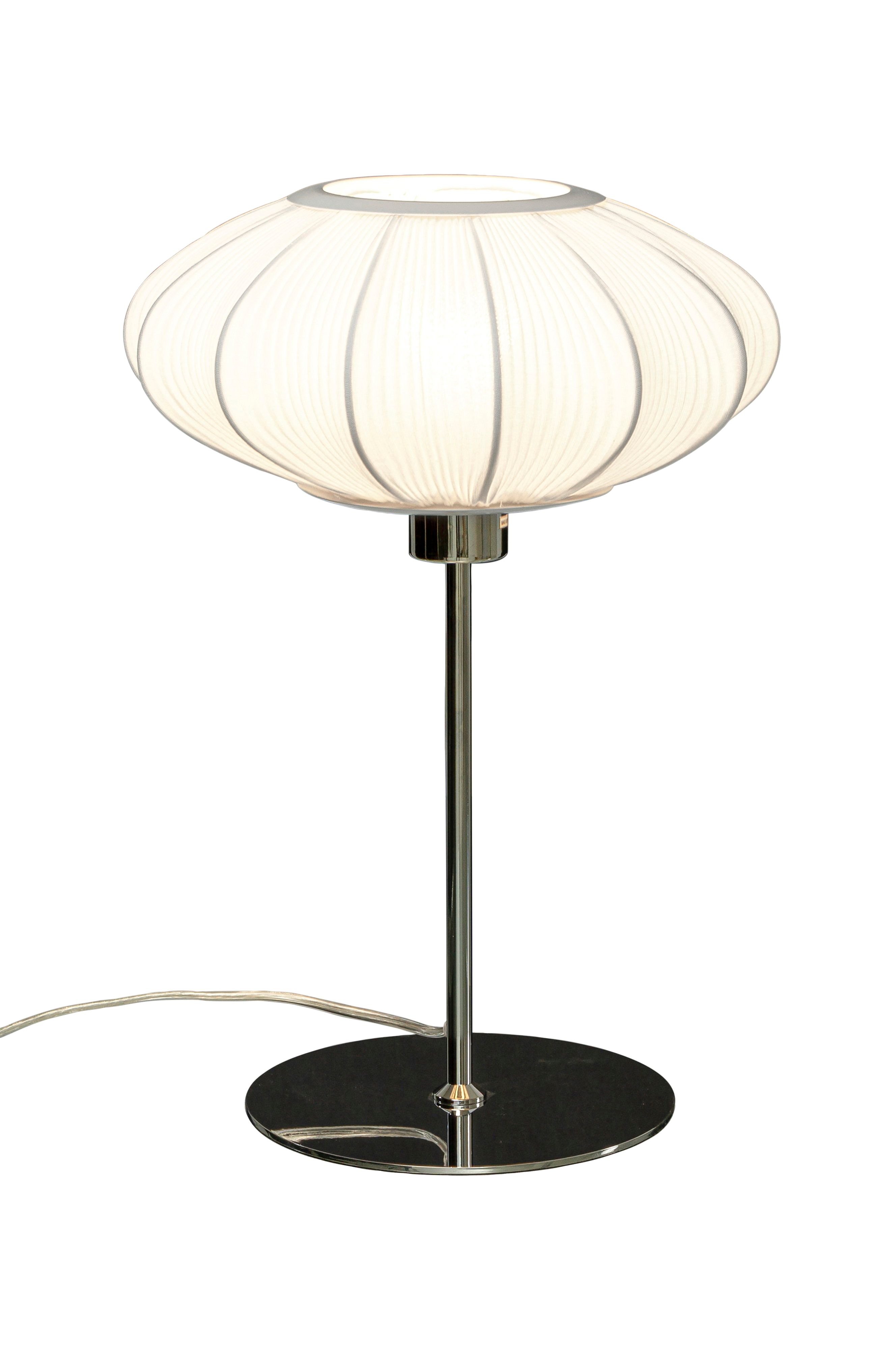 Mamsell bordslampa med smalt plisserat stretchigt tyg, ger ett behagligt lätt dämpat ljus. passar perfekt på ett sidobord eller en skänk. Mamsell bordslampa kan också kombineras med andra lampor i mamsell -familjen.