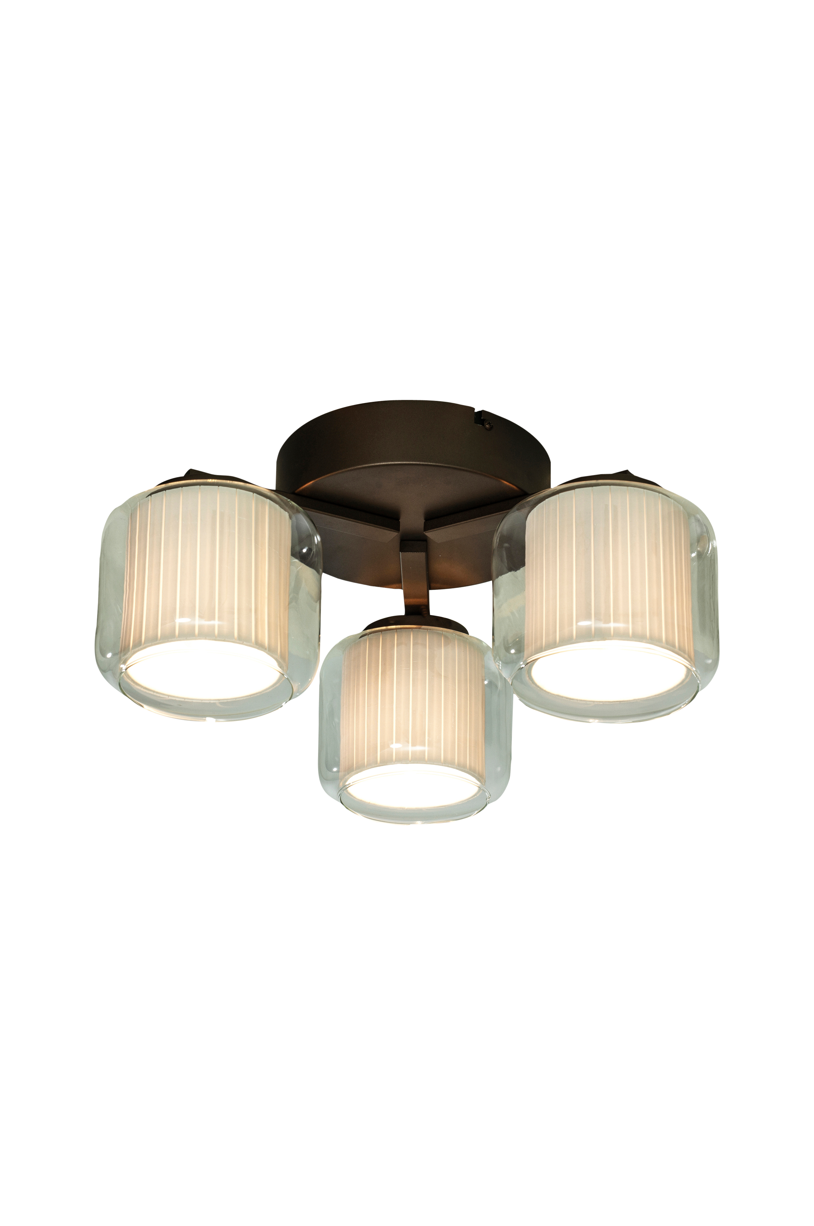 Den trearmade taklampan amsterdam passar dig som söker funktionell belysning i en originell och spännande design. Med ett metallfäste i en härlig kaffebrun färg och med tre veckade textilskärmar, var och en inuti en glaskupa. Amsterdam ger ett mjukt, behagligt ljus och fungerar bra som allmänbelysning i de flesta rum.
