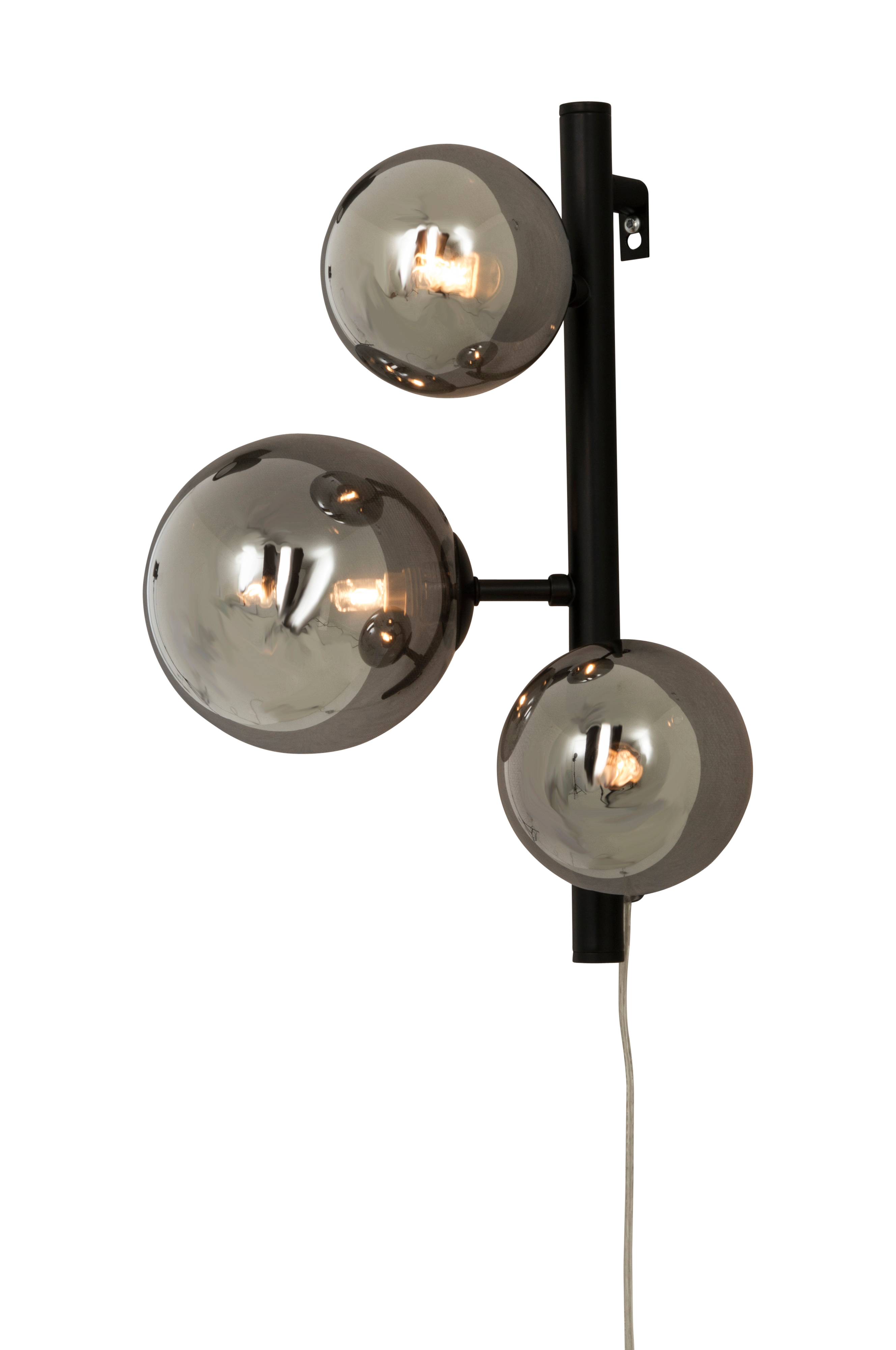 Vägglampa i metall och glas. Dimmerbrytare på sladden. Ljuskällor ingår inte.