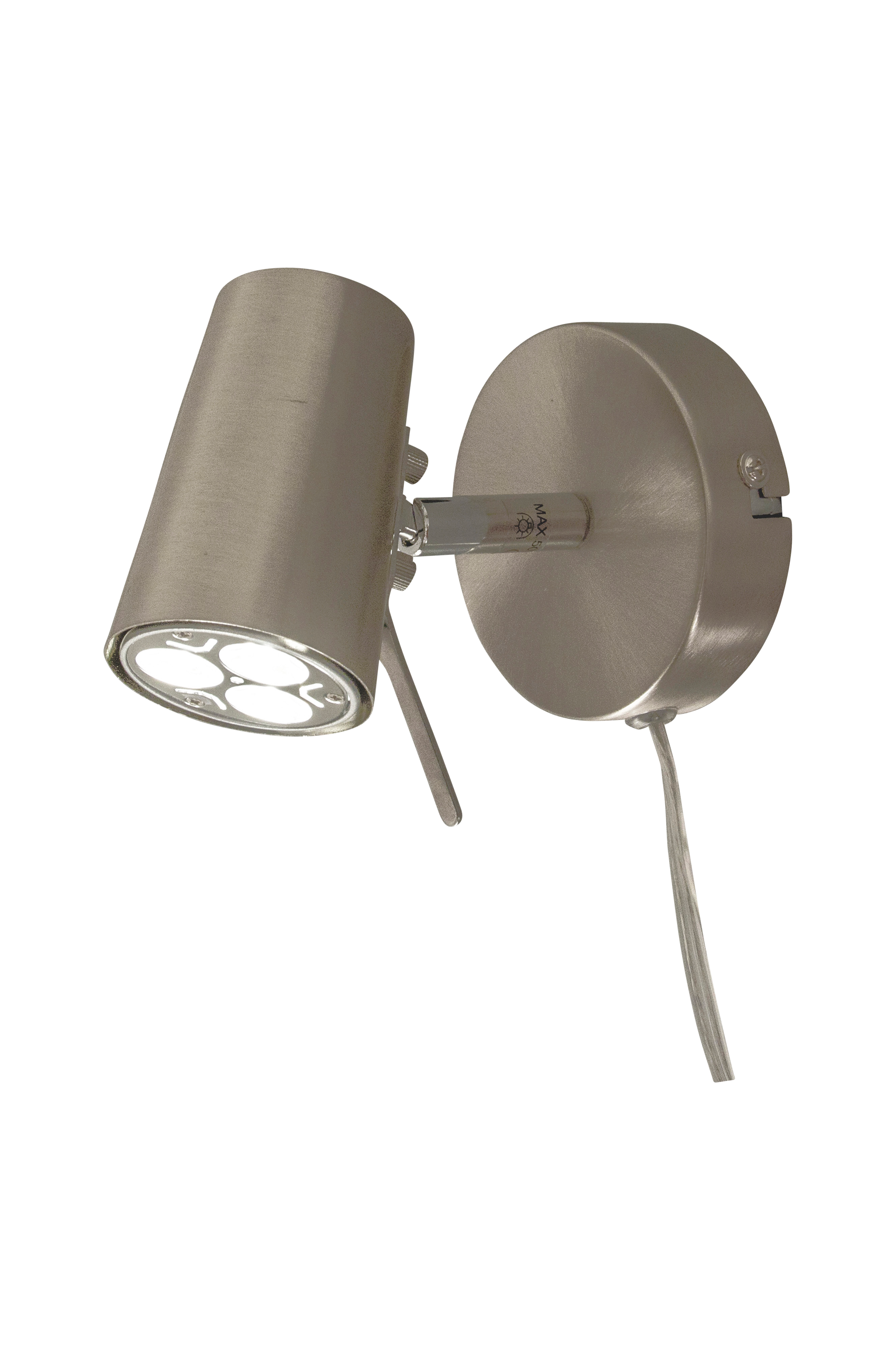 PILOT vägglampa. Lamphuvudet kan justeras och strömbrytaren är på sladden. Ljuskälla ingår inte. Material: metall
