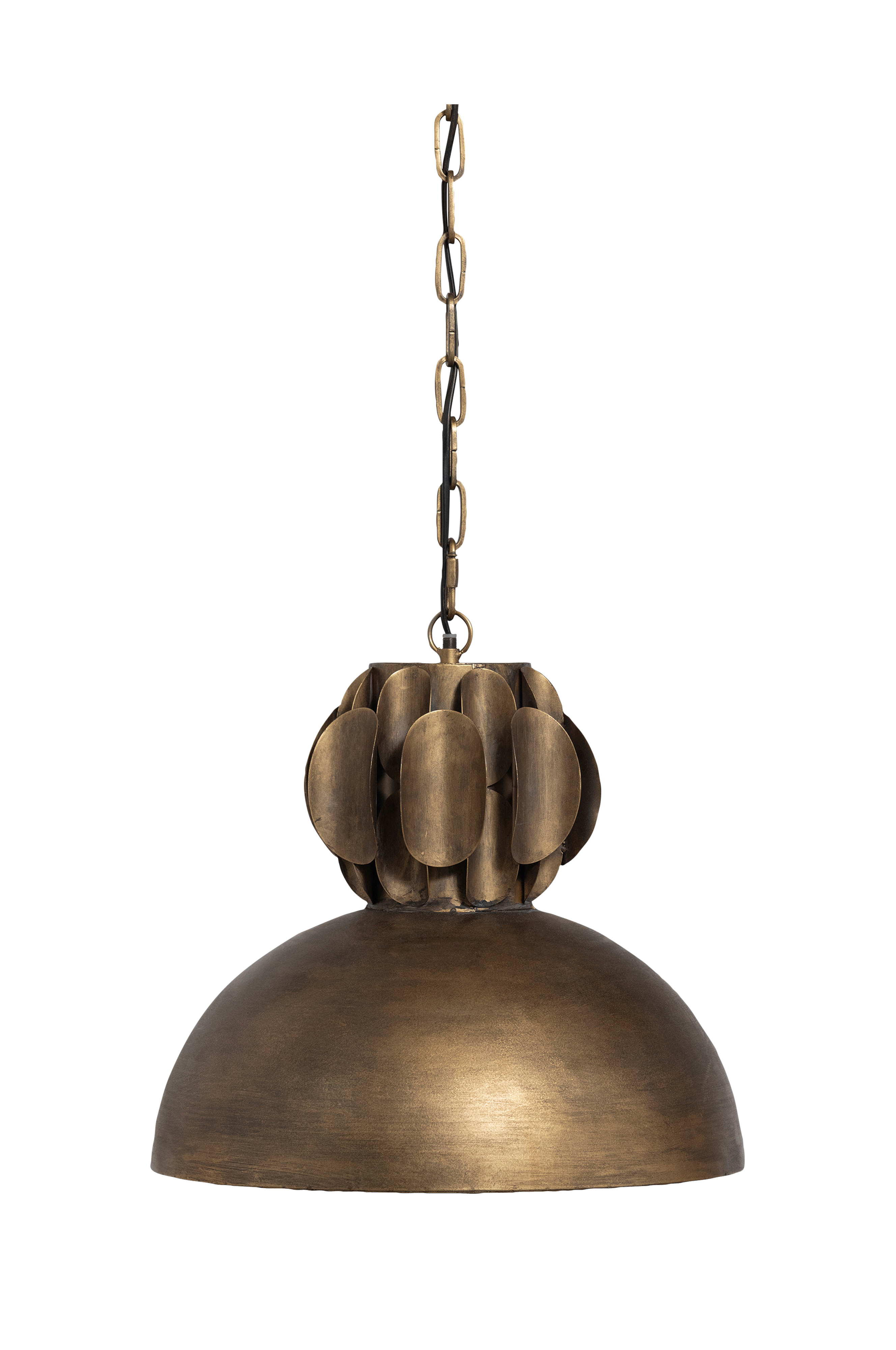 Värme, lyx och elegans - det kännetecknar Polished taklampa, från det nederländska märket BePureHome. Denna hängande metallampa i stor storlek är slående på grund av den eleganta antika mässingsfinishen och de organiska inslagen upptill. Kedjelänken runt sladden ger Polished extra karaktär.