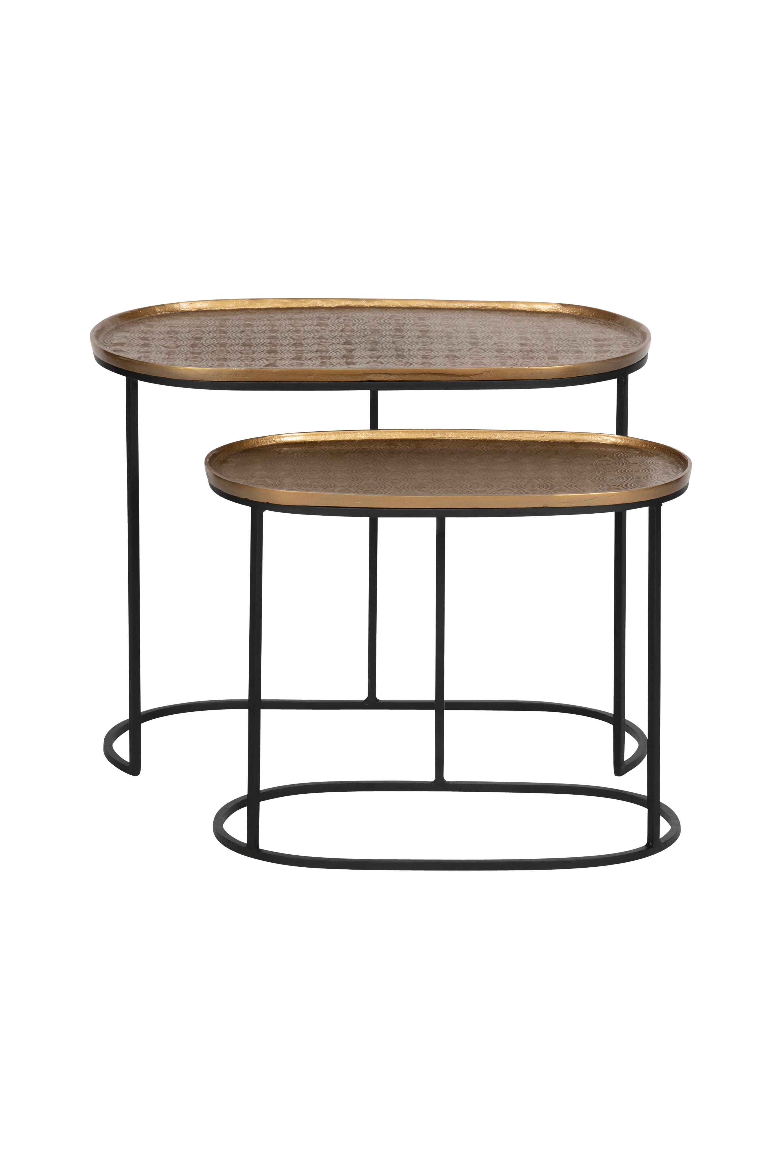 Embrace - sidobordssats av 2 - kommer från kollektionen av det holländska märket BePureHome. Embrace har en aluminiumplatta med antikmässing. Basen är gjord av järn med en matt yta.