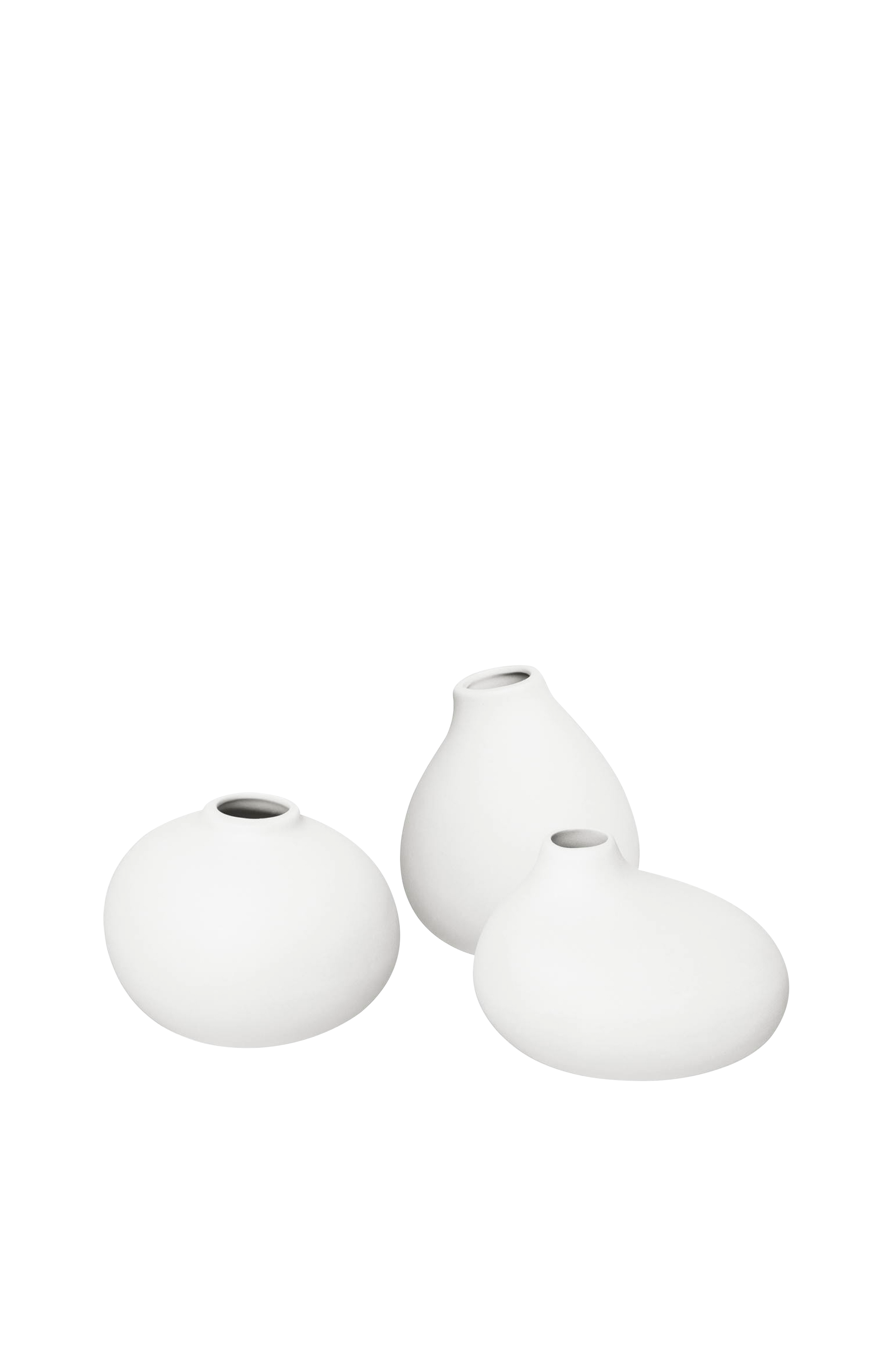 NONA Set med 3 Vaser i obehandlad porslin från Blomus. De vackra vaserna är tillverkade i resistent porslin som lämnats oglaserad och grov. Små skillnader i form, färg och synliga linjer gör varje NONA Vas unik.