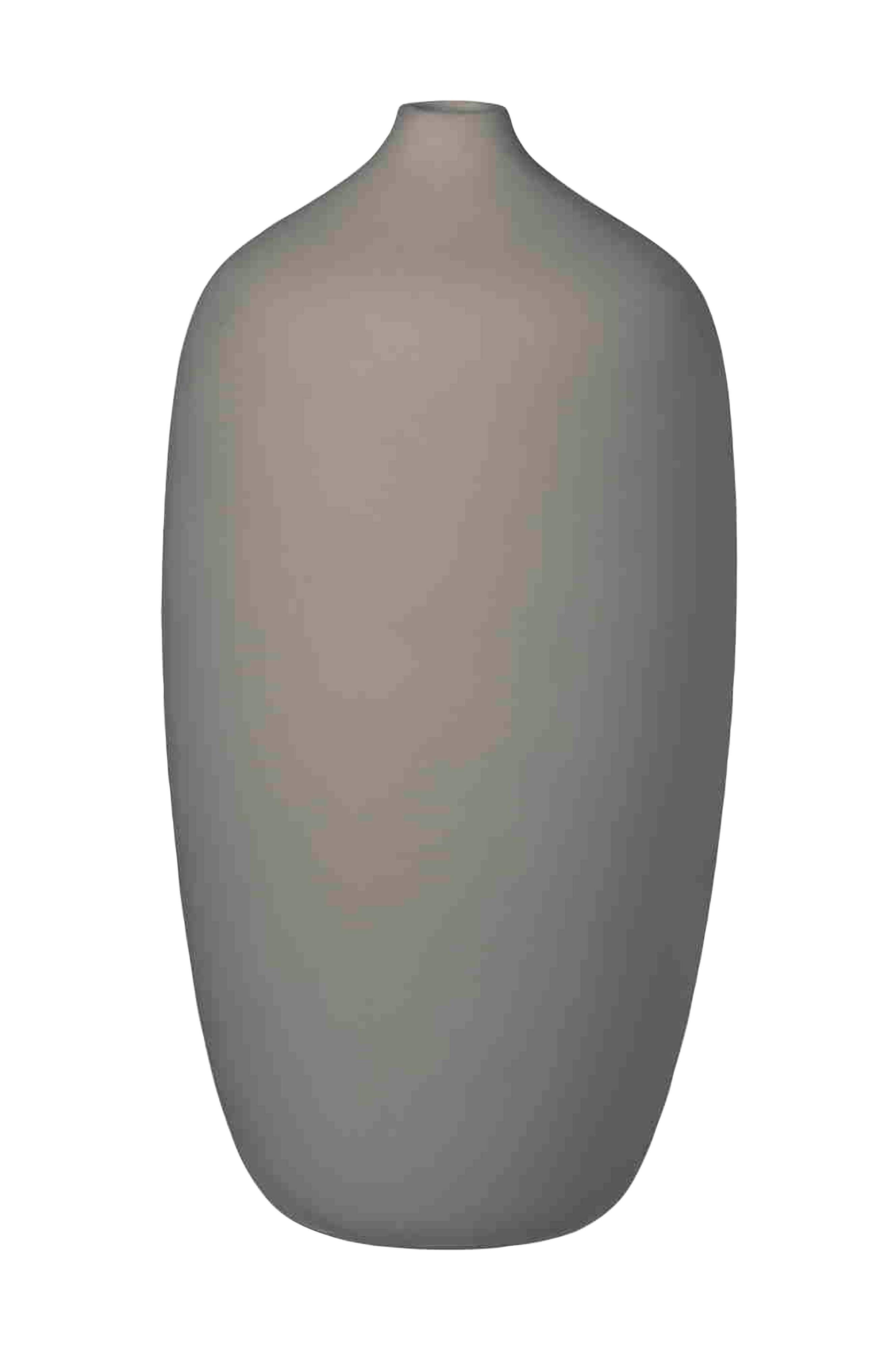 Vaserna är tillverkade i glaserad keramik som fortfarande har en viss strävhet, vilket ger varje vas ett unikt utseende.