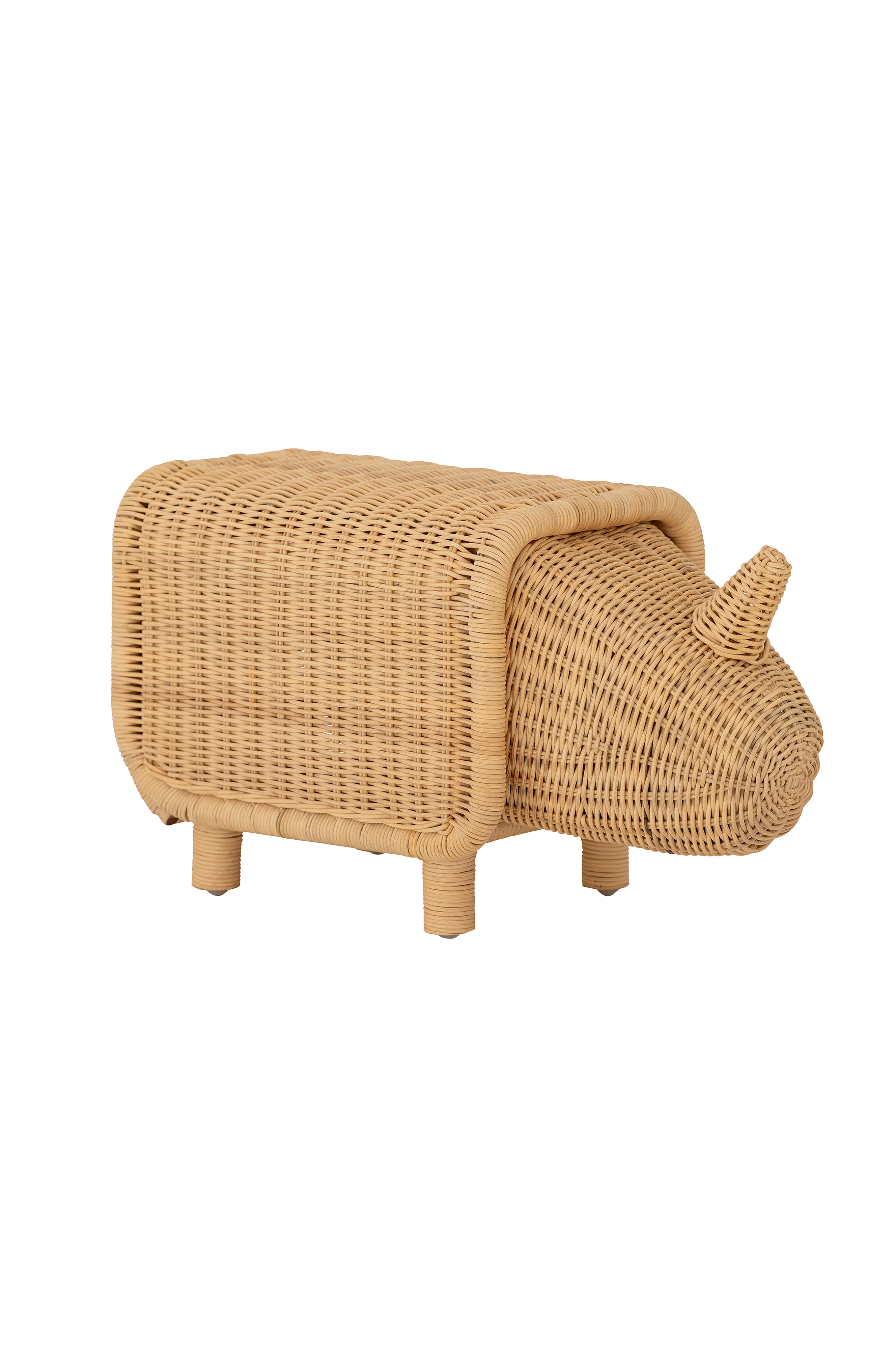 Soffe förvaringspall från Bloomingville MINI är en söt liten noshörning av rotting, med huvud och svans. Öppna med svansen och förvara alla dina favoritleksaker i den. Den multifunktionella noshörningen är perfekt i vardagsrummet eller barnrummet.