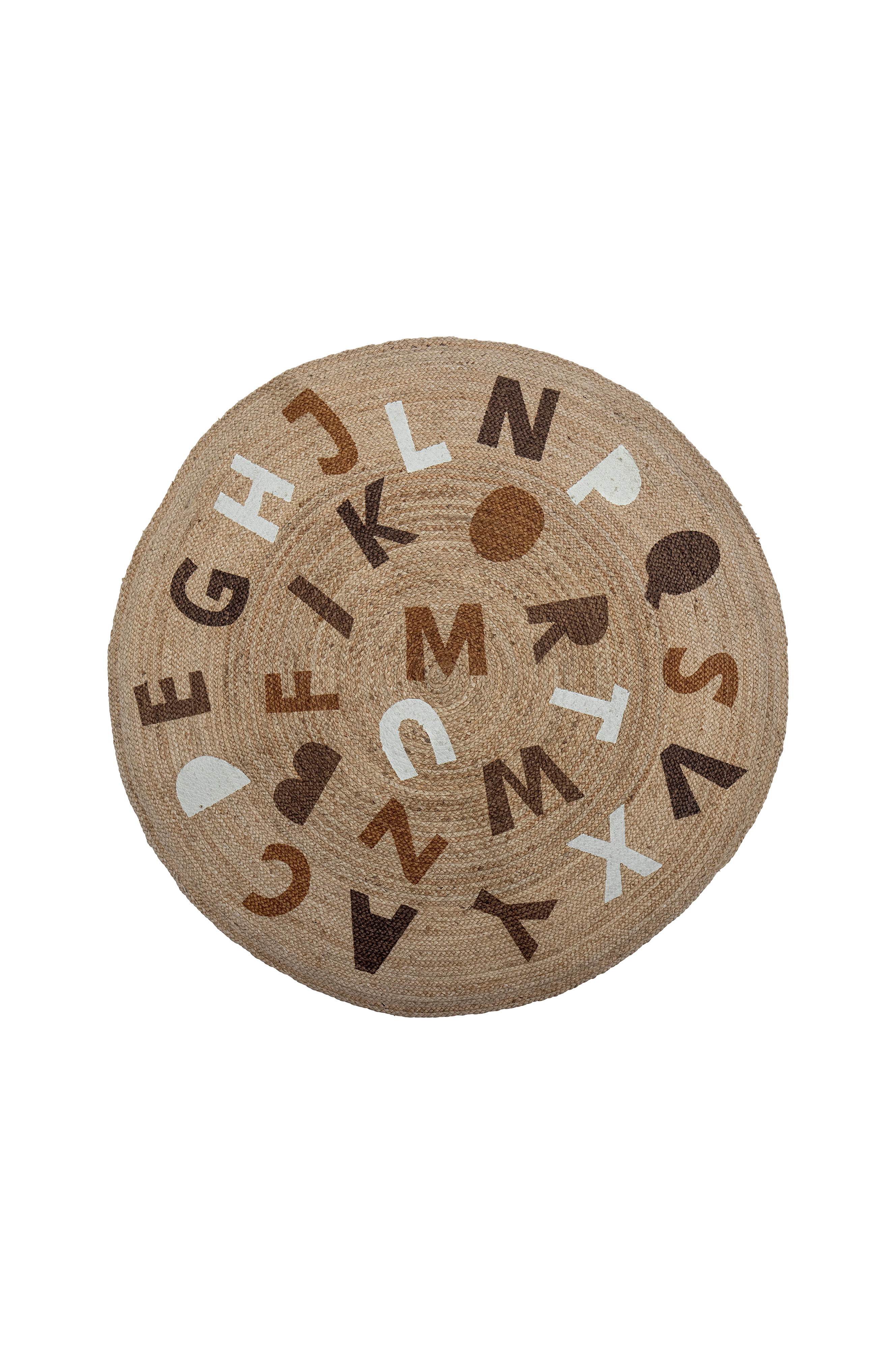 Dinne matta från Bloomingville MINI är gjord av jute och har ett tryckt motiv med bokstäver i varma nyanser. Mattan är dekorativ, mysig och pedagogisk - den perfekta kombinationen. 100% jute.
