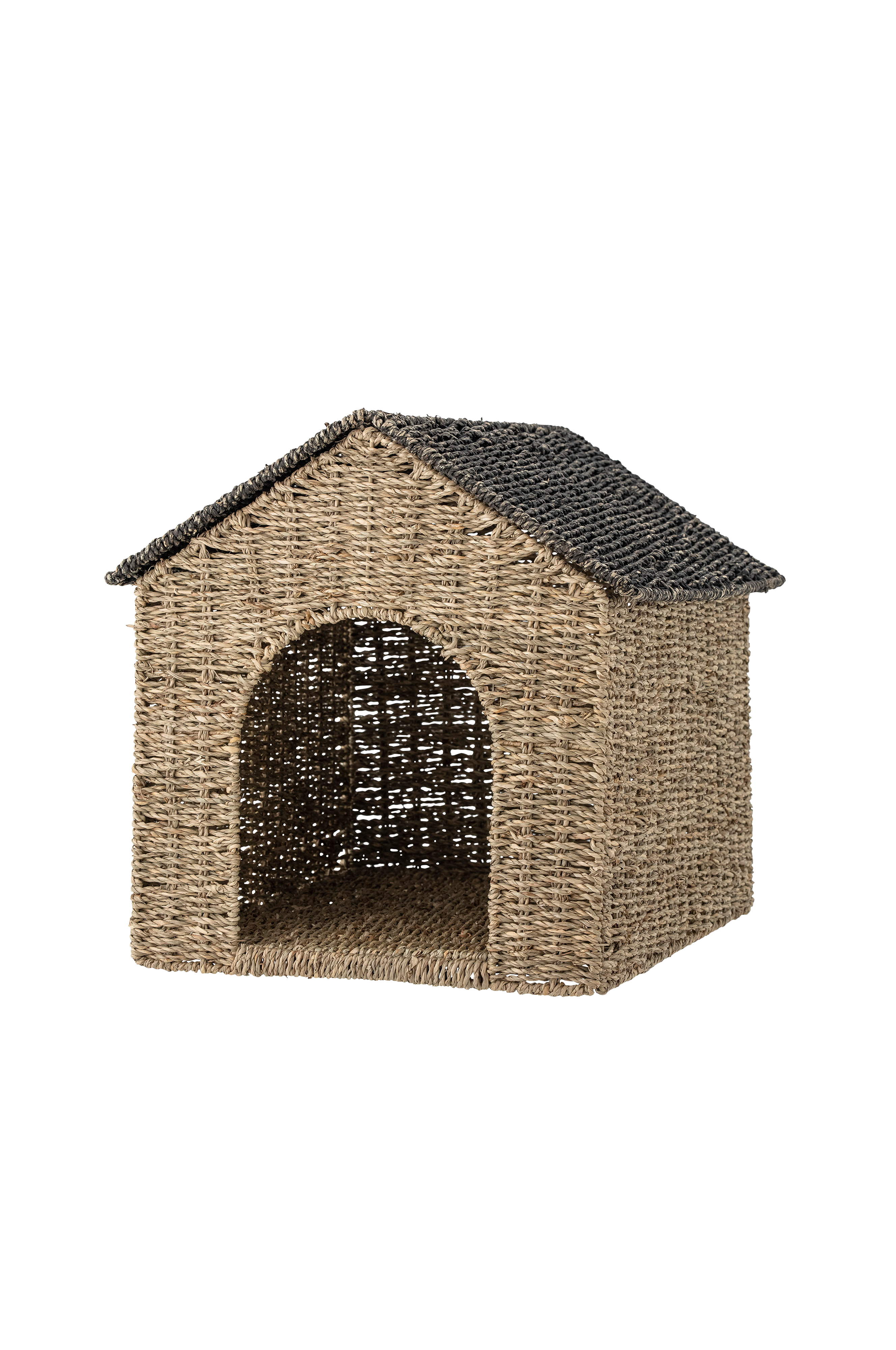 Fredie korg med lock från Bloomingville MINI är gjord av sjögräs som ger rummet en naturlig och varm känsla. Korgen kan användas för förvaring och lek i många timmar. Fyll den husformade korgen med leksaker genom att lyfta upp taket.