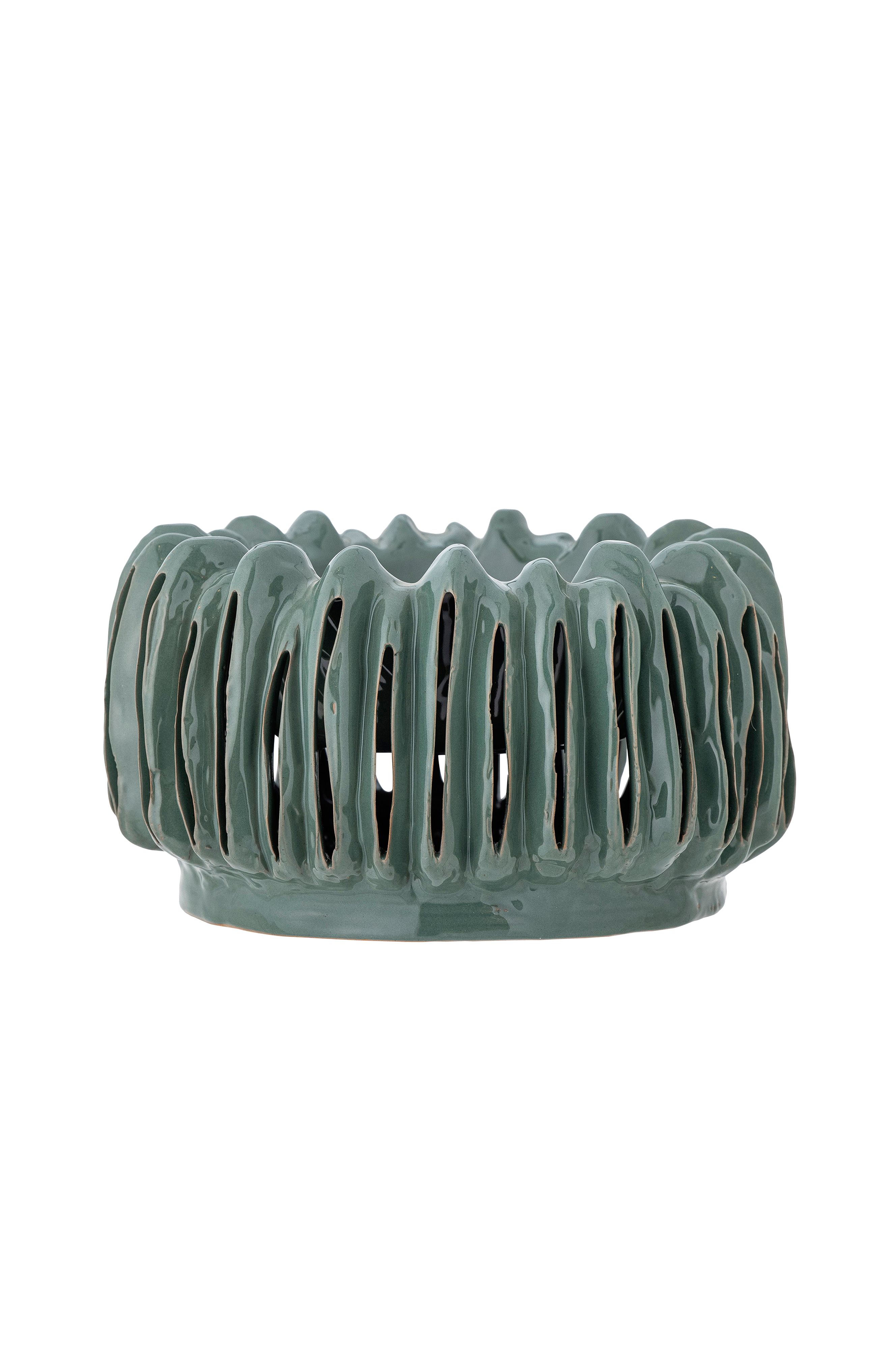 Mavel blomkruka från Creative Collection är en dekorativ kruka av stengods i en vacker, grön färg. Den unika blomkrukan är designad med handformade skåror. Perfekt för din favoritväxt. Eftersom de är handgjorda är varje produkt unik. D25xH14 cm