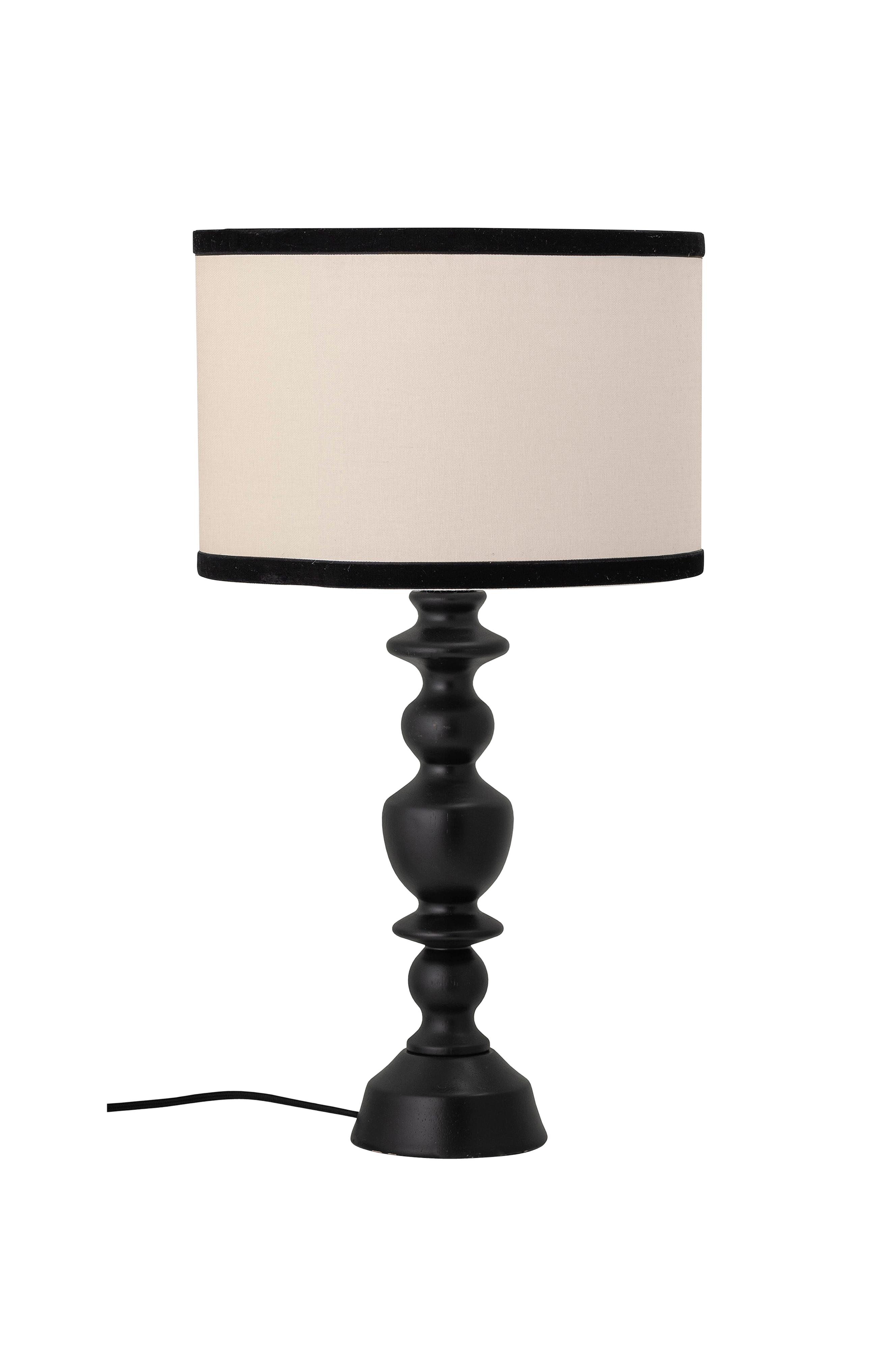 Lys upp rummet med denna lampa i retrostil. Den svarta kanten runt lampskärmen är gjord av ett mjukt, svart flockprint. Foten är tillverkad av svartlackerat gummiträ och kombinationen med lampskärmen av naturfärgat linne ger ett slående intryck i rummet.