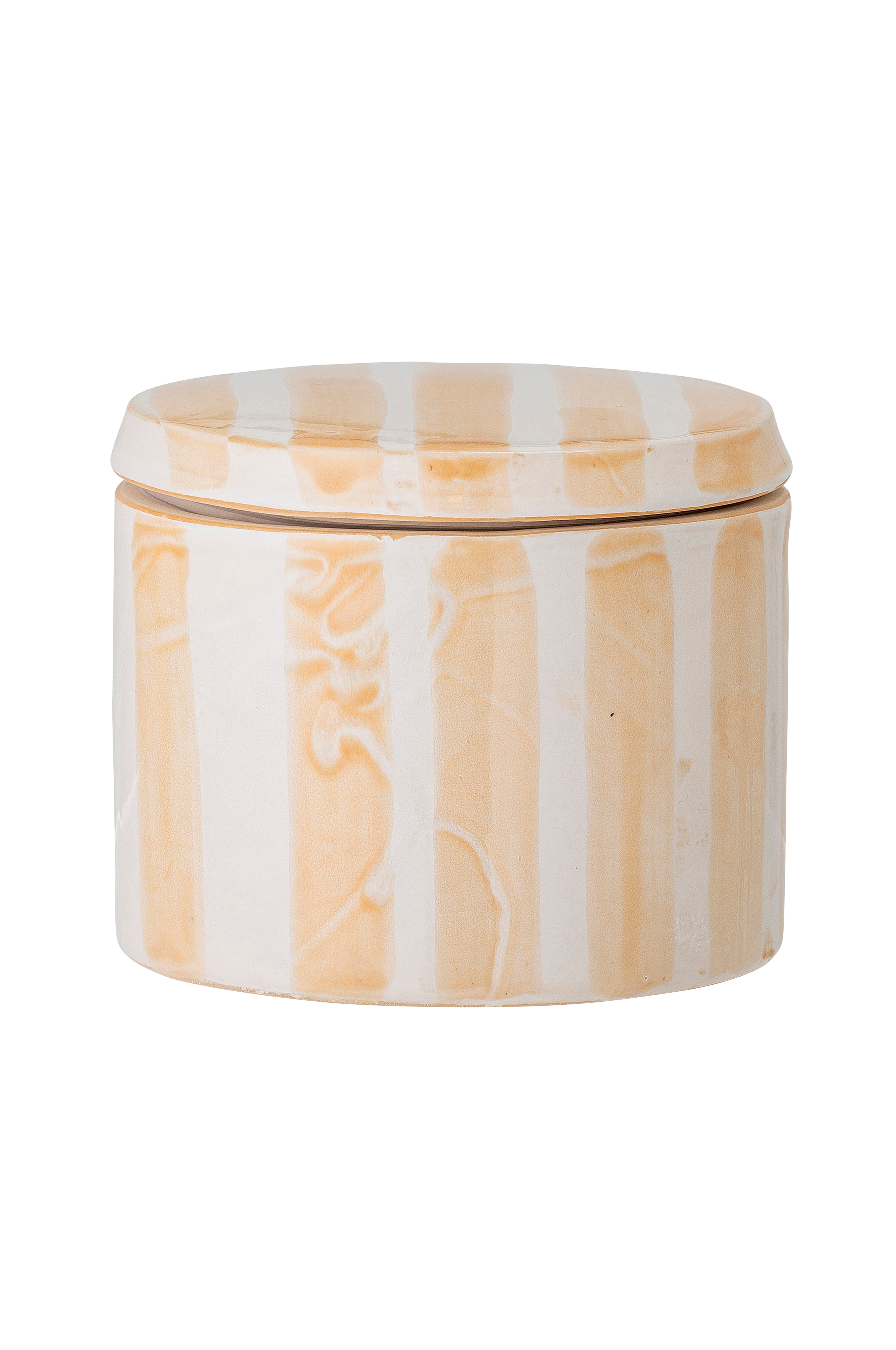 Cathe burk med lock från Creative Collection är en perfekt förvaringslösning för alla rum i hemmet. Burken har ett lock som håller insekter borta från livsmedel. Burken är gjord av stengods och målad med gula och vita ränder. Burken är ett perfekt tillskott i ditt kök, om du letar efter något som inte bara är funktionellt, utan även snyggt.