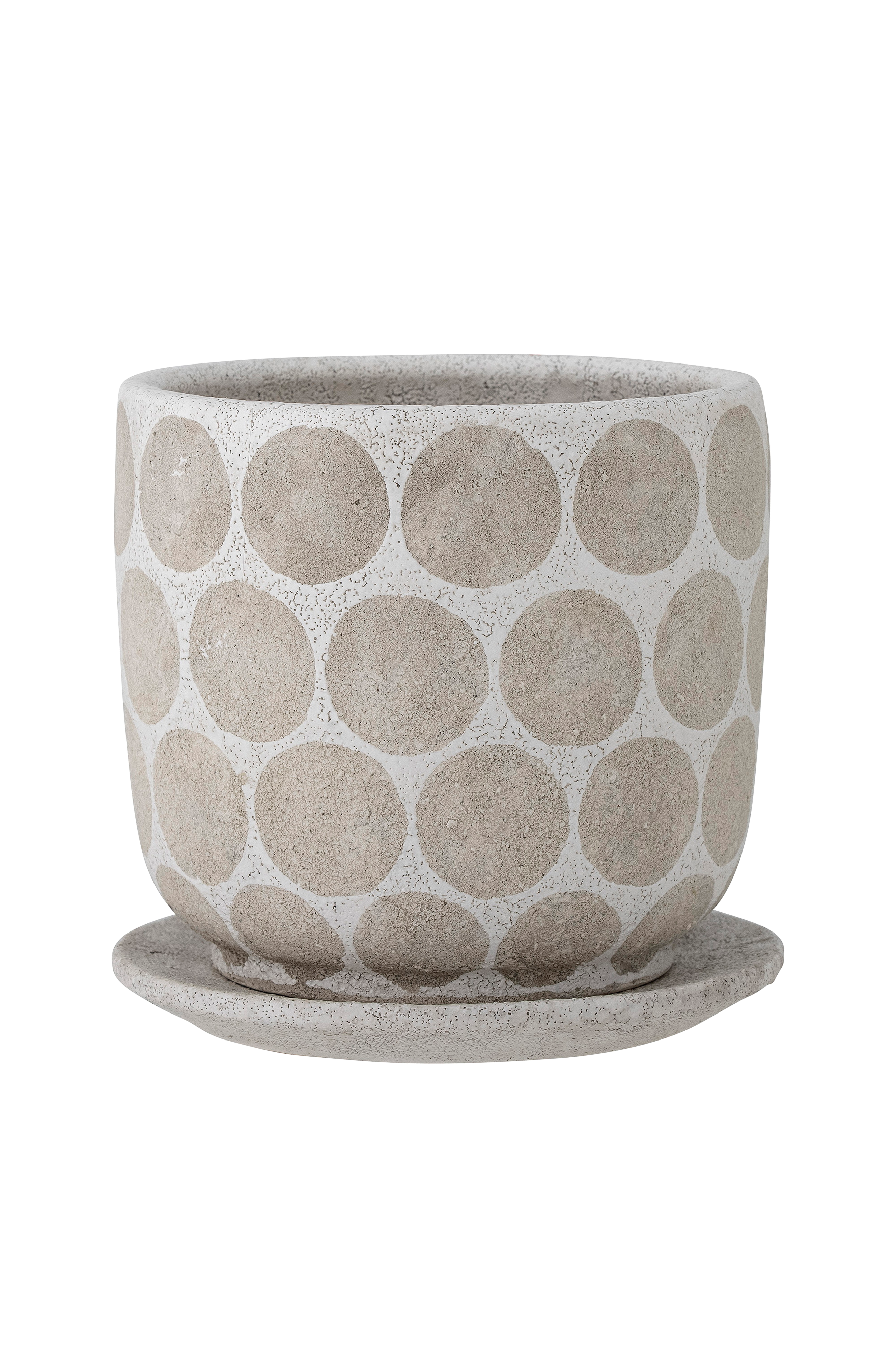 Felan blomkruka från Bloomingville är gjord av stengods i en fin, vit färg med spräcklig yta och prickmönster. Den passar i alla rum och ger en mysig stämning. Blomkrukan har ett fat. På grund av glaseringen och eftersom produkten är handgjord är den inte helt vattentät och kan färgerna variera.