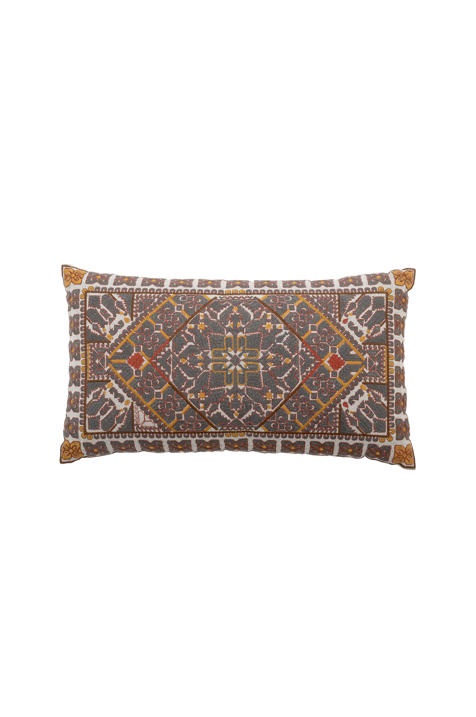 Kudden Emalie från bloomingville är en rektangulär kudde tillverkad av 100% bomull. Den har ett broderat mönster och en slät baksida. Den unika designen kommer att lysa upp din favoritsoffa eller fåtölj.