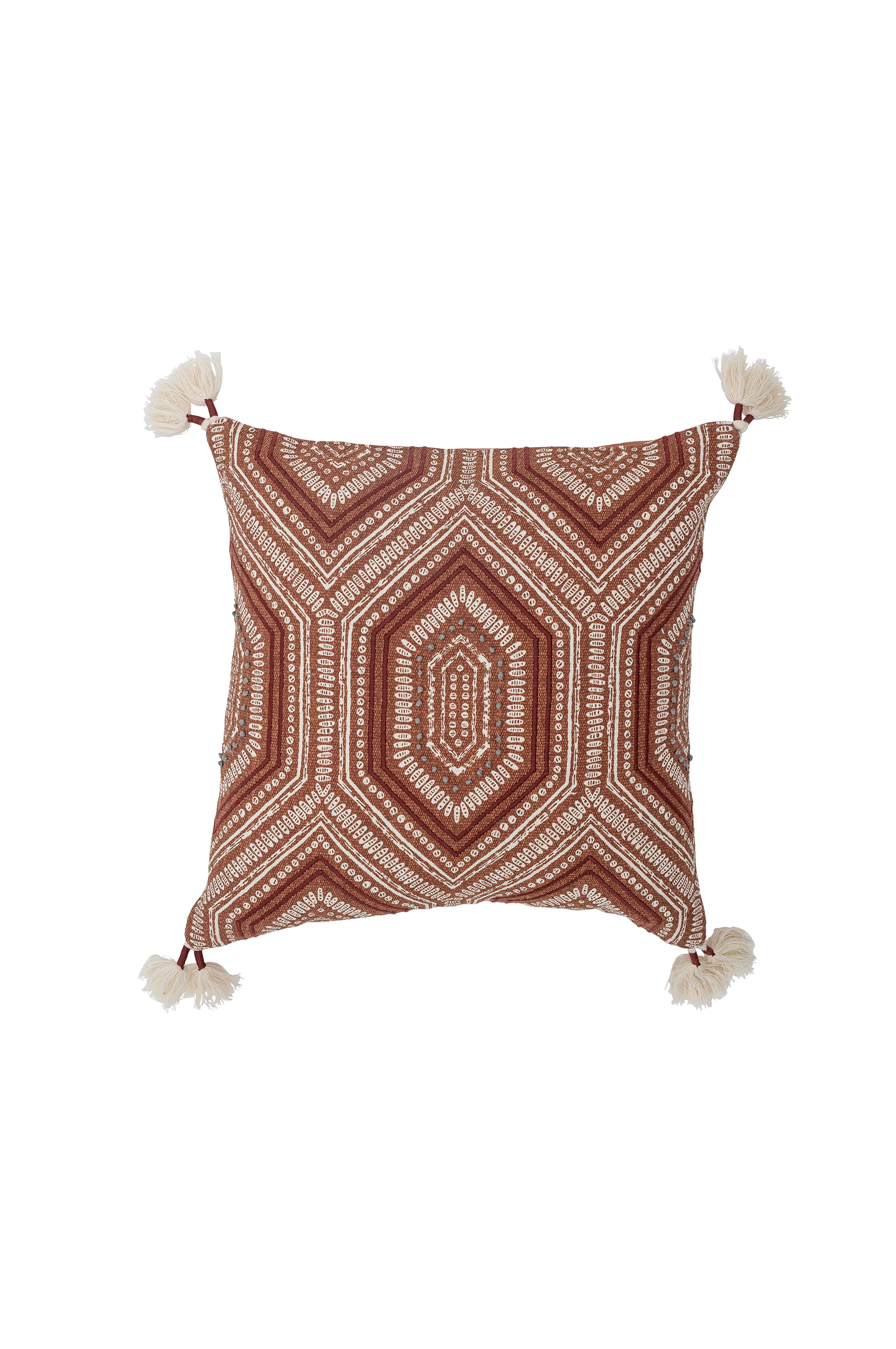 Feluka cushion från creative collection är en mjuk kudde tillverkad av bomull och linne. Den har dubbla tofsar och ett vackert tryckt mönster med broderade detaljer. Den kommer att mjuka upp din favoritsoffa eller fåtölj.