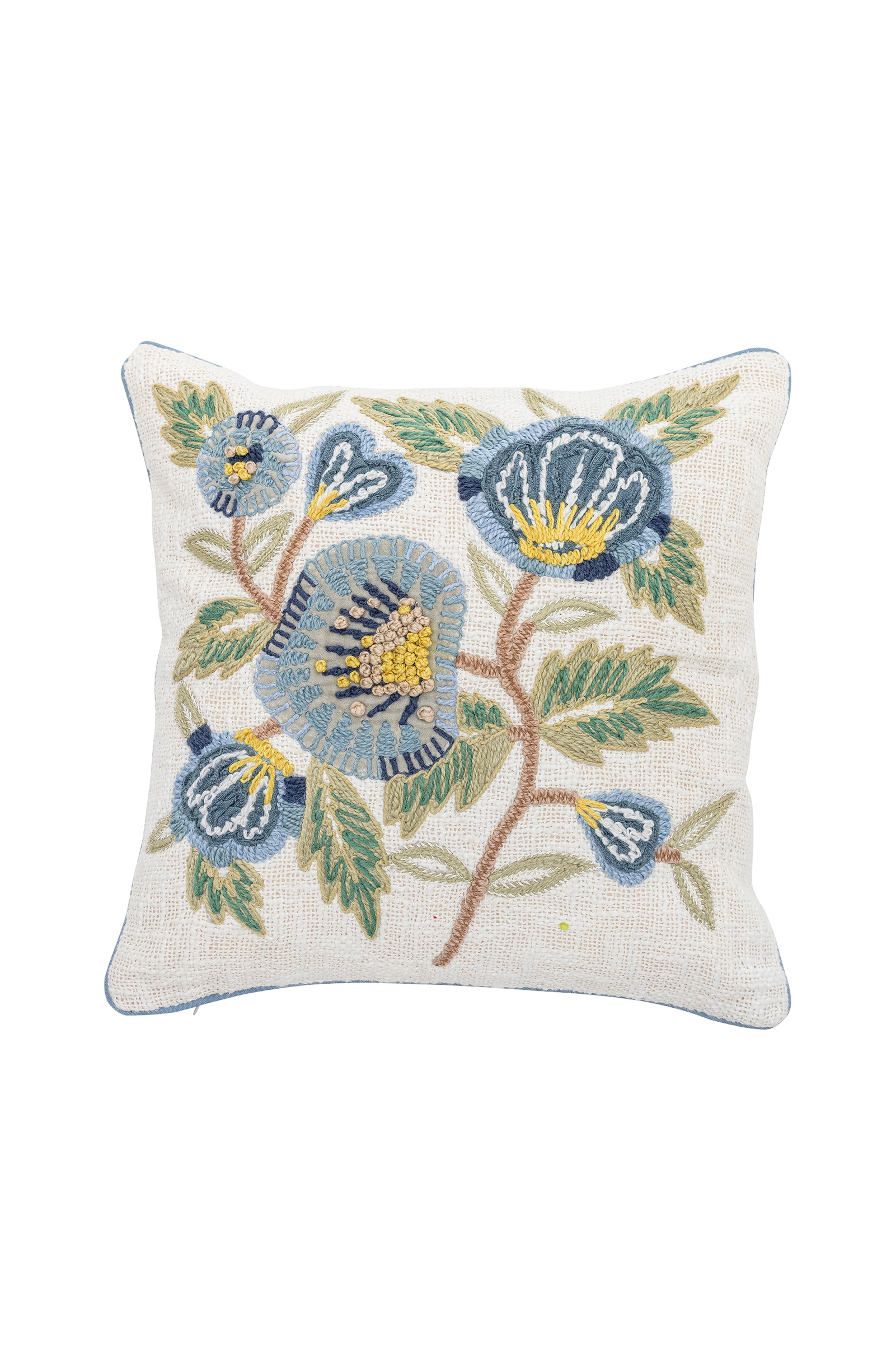Hanna cushion från creative collection är en dekorativ kudde tillverkad av bomull med polyesterfyllning. Den vävda framsidan har broderi och passpoaler, medan baksidan är enfärgad. Ett blommotiv visas på en mjuk bakgrund och skapar en mild blandning av toner.