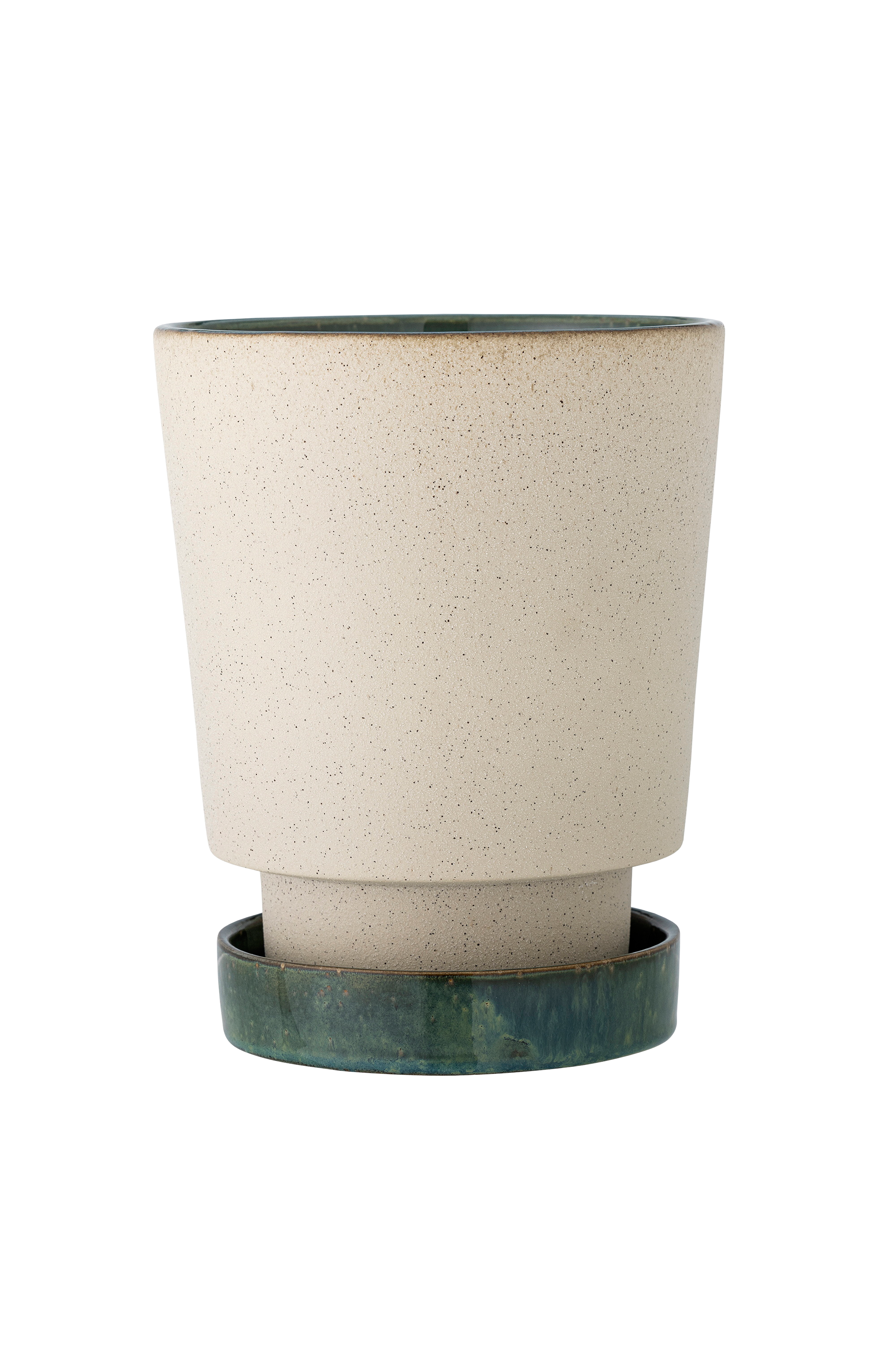 idril blomkruka med sugrör från bloomingville, tillverkad av stengods, är ett elegant och praktiskt tillskott till hemmet. Designad i enkel beige med en mörkgrön bas, erbjuder den en subtil kontrast och en naturlig ram för dina växter. Dess klassiska form och jordnära färger smälter enkelt in i alla inredningar. Mått: d19xh25,5 cm