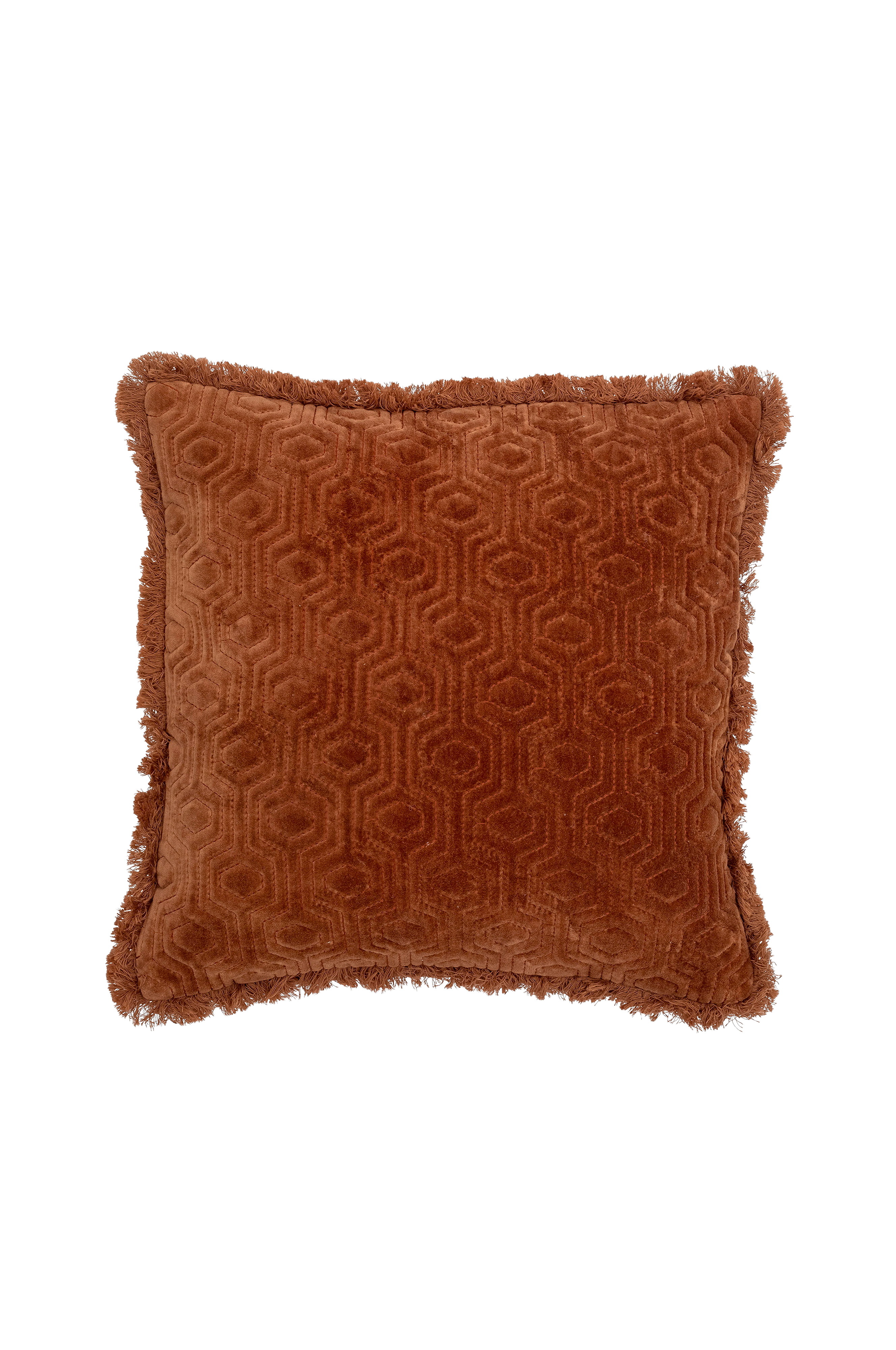 Mahado kudde från Bloomingville ger hemmet en varm känsla. Kudden är gjord av bomull. Den har ett broderat mönster på en bomullsväv och har små fransar runt kanten. Fyllning 100% polyeter.