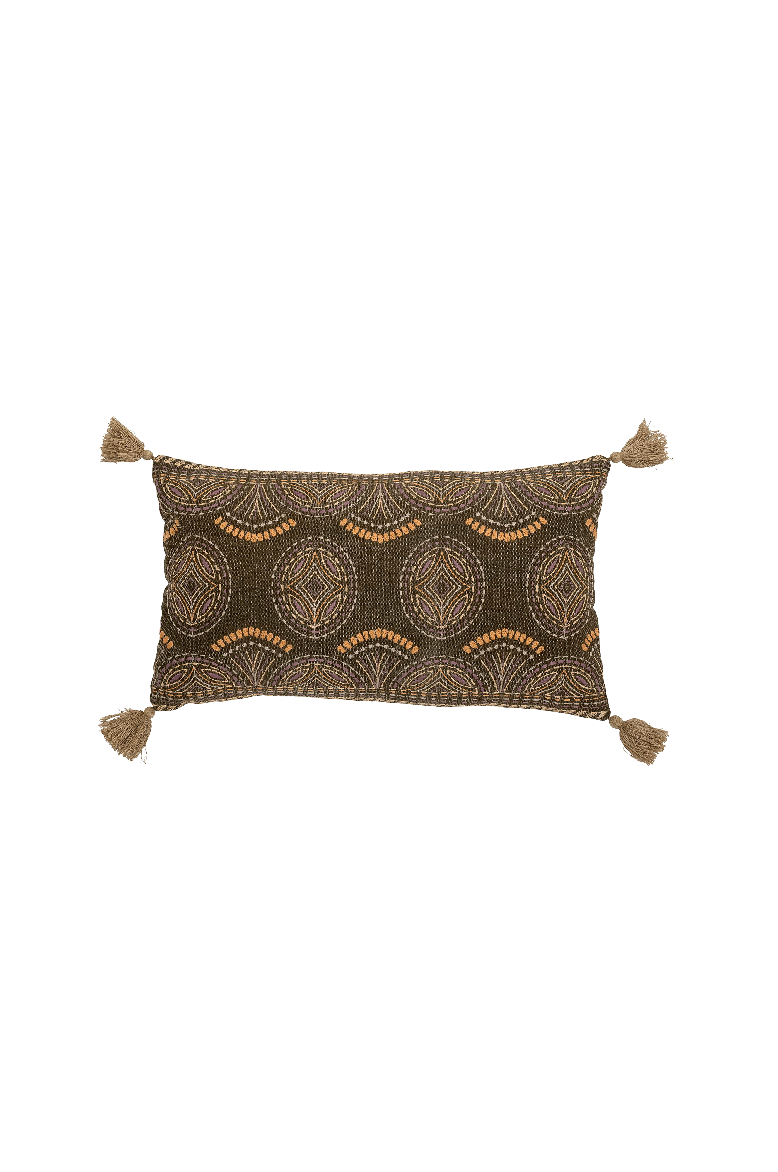 Nesma kudde från Bloomingville är en vacker kudde gjord av bomull i bruna nyanser. Den rektangulära kudden av bomullstyg är broderad med ett unikt mönster och har tofsar i varje hörn. De brunaktiga färgerna ger en mysig stämning och kudden gör stolen eller soffan väldigt bekväm. Fyllning 100% polyeter.