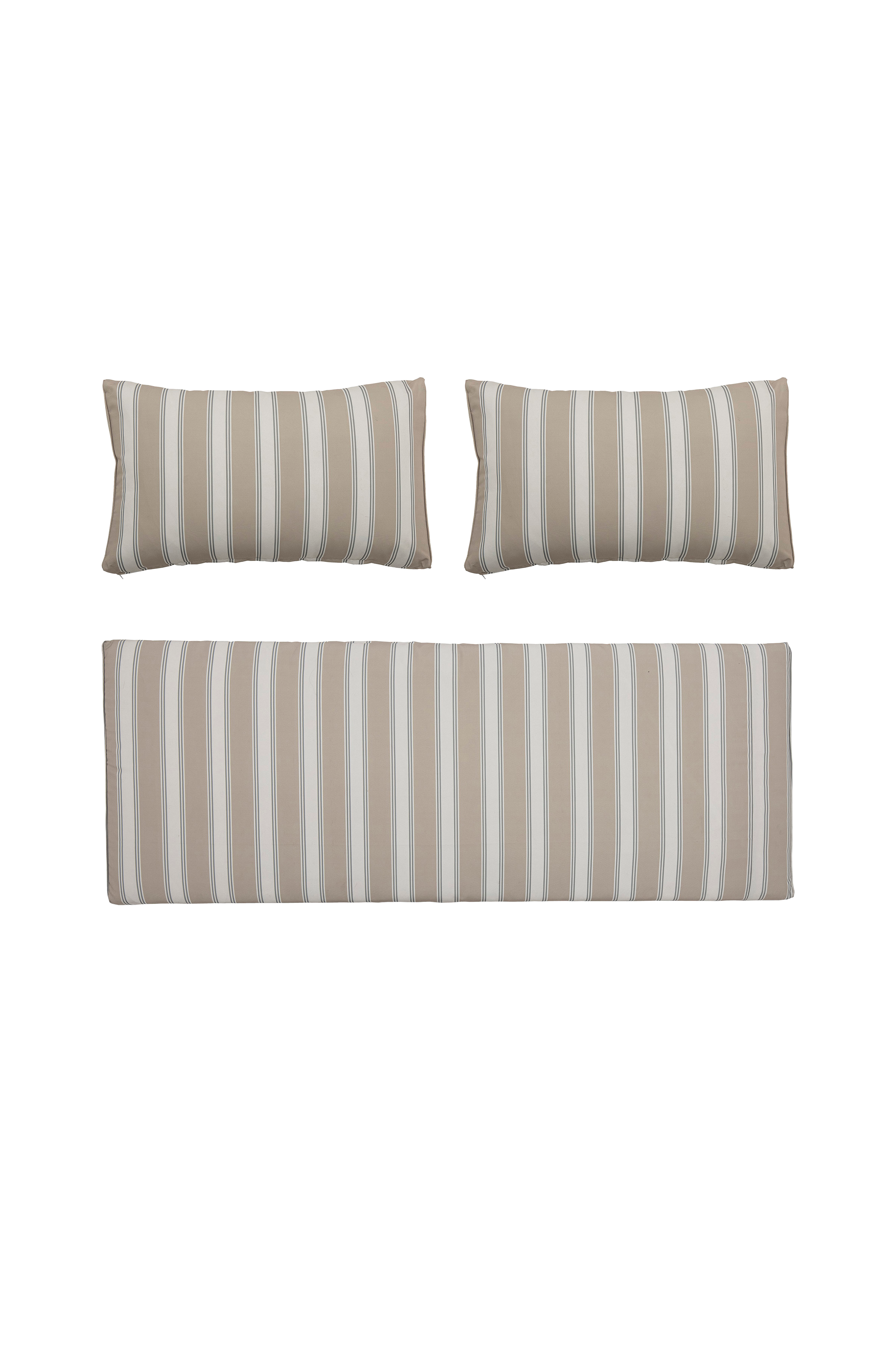 Mundo kuddfodral från Bloomingville är ett set med 3 kuddfodral till Mundo loungesoffa. Kuddfodralen är tillverkade av vävd polyester i vacker kombination av grönt och sandfärg. Notera att kuddfodralen saknar fyllning. Mått Stora 57x154, höjd 8 cm. Små 45x75, höjd 9 cm x 2.